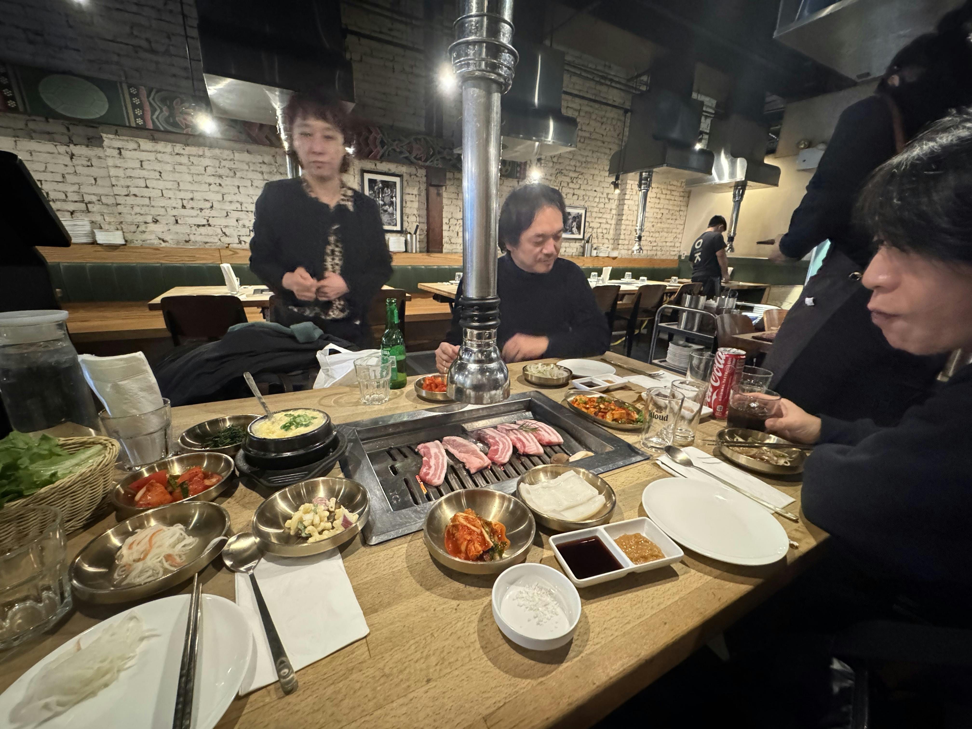 その晩は会期中、メインのデモ演奏者そして他のギタリストさん達のマネジメントまで担って戴いた旧知のNY在住ジャズ・ギタリスト「中井勉さん」と打合せを兼ねてコリアンタウンへGO!