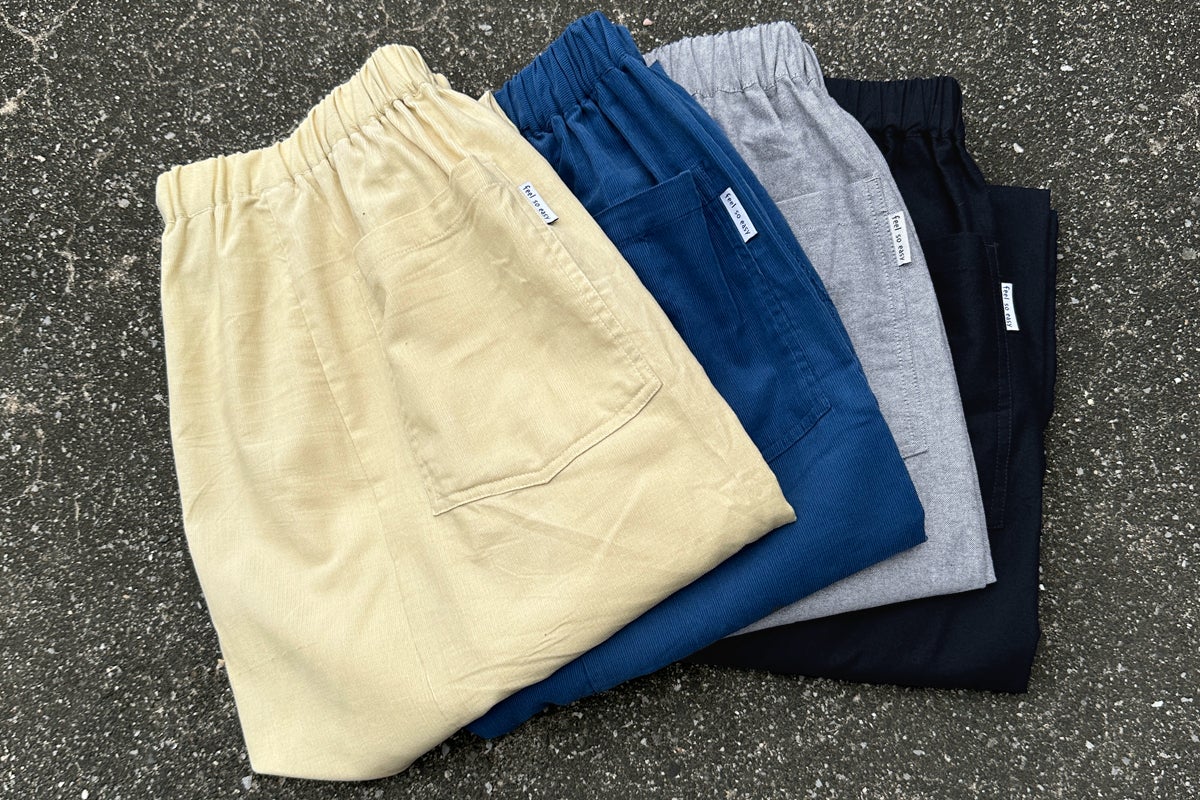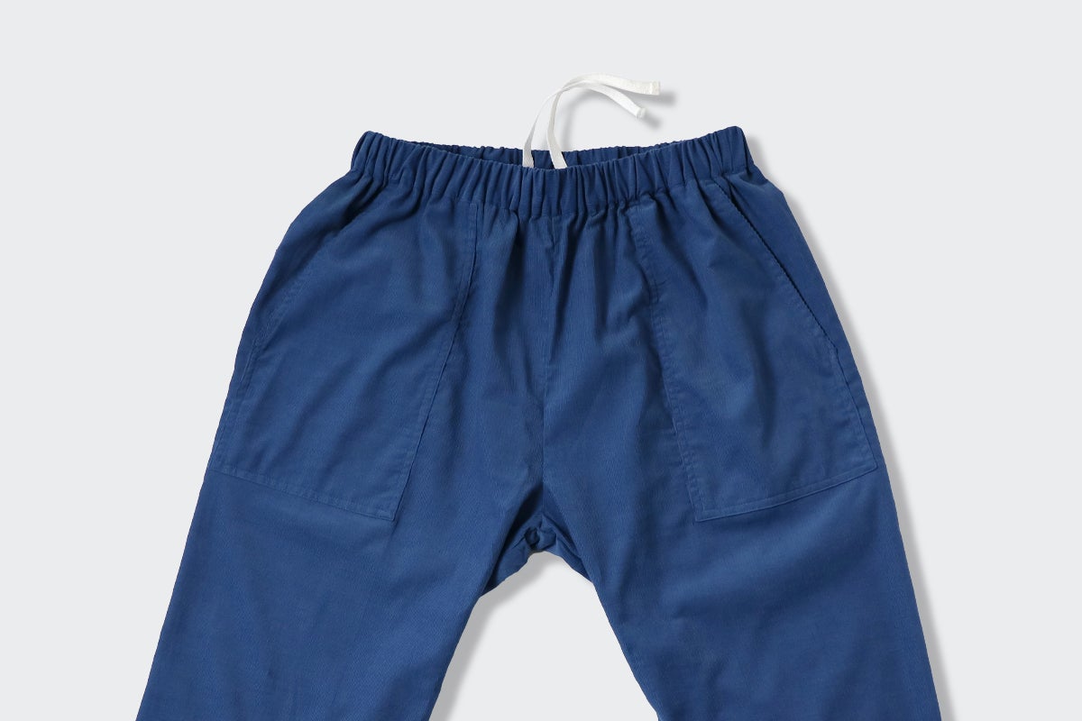 コーデュロイといえば秋冬に穿くものと認識されていますが、本来はアメリカで夏に穿くために作られた生地だという説があるとのこと。特に、畝の細い薄手のコーデュロイは、しなやかで柔らかく吸湿性もあり、タオル地のような感覚です。