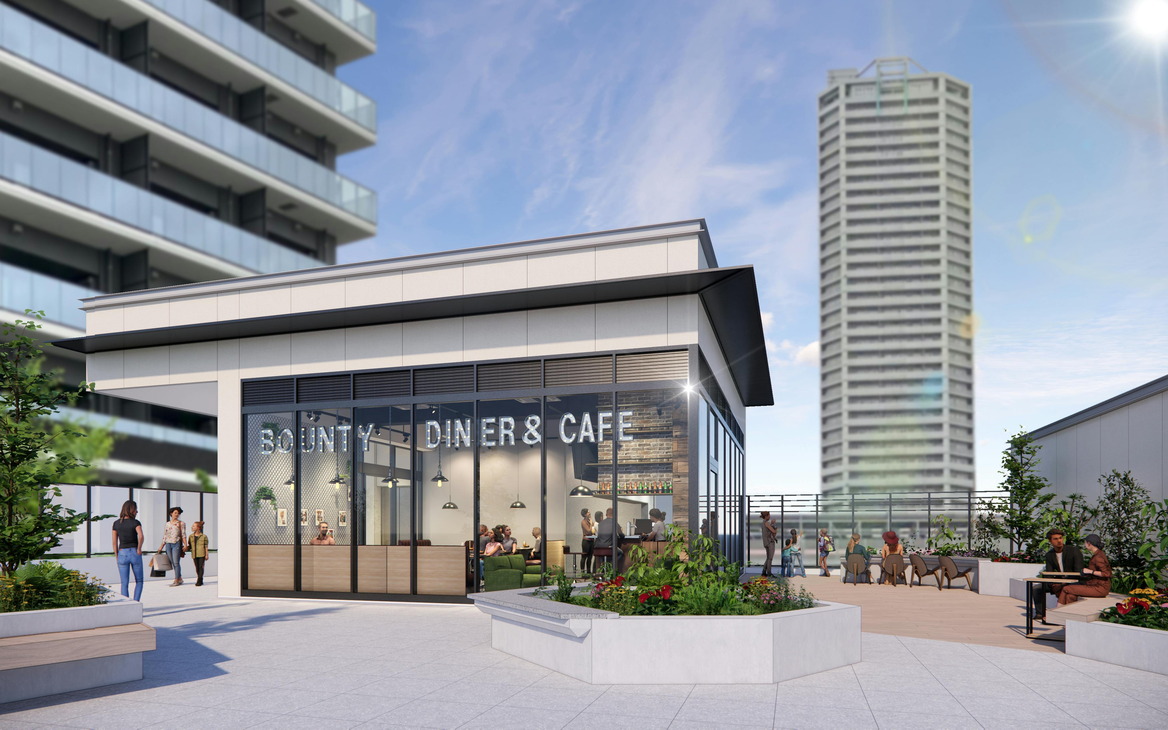 左側の白い壁にはとある方がBOUNTYのロゴや馴染みある出店場所や歴史などの絵を描いてくださいます。