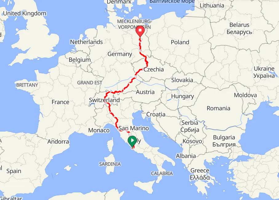 僕たちは今回イタリアのローマからドイツのベルリンまでのおよそ2400kmを旅することになります!