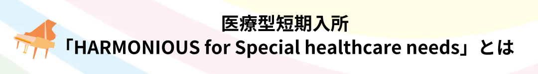 当院の「HARMONIOUS for Special healthcare needs」は、日中のお預かりを担う医療型特定短期入所施設です。医療従事者が常駐している『医療型』の強みを生かし、他の施設では対応が難しいような、人工呼吸器管理などの重度の医療的ケアがおありのお子さまを率先して受け入れています。