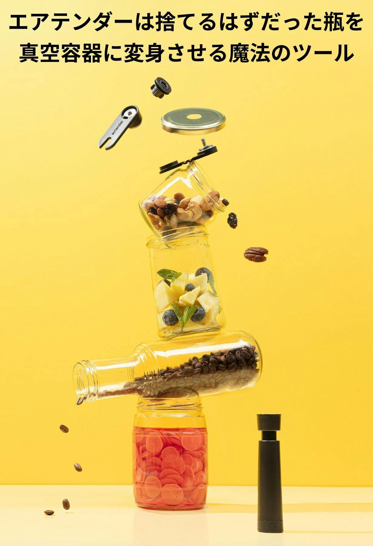 日本人にとって瓶詰の商品は馴染み深いと思います。「ごはんのお供」と呼ばれる瓶詰の商品をたくさんスーパーで見かけます。そんな日本人の食生活にエアテンダーはきっとフィットすると信じています。汎用性が高く、自分だけの使い方を楽しめるアイテムなので、こんな風に使いたい!という皆さまのご意見もぜひお聞かせ下さい。