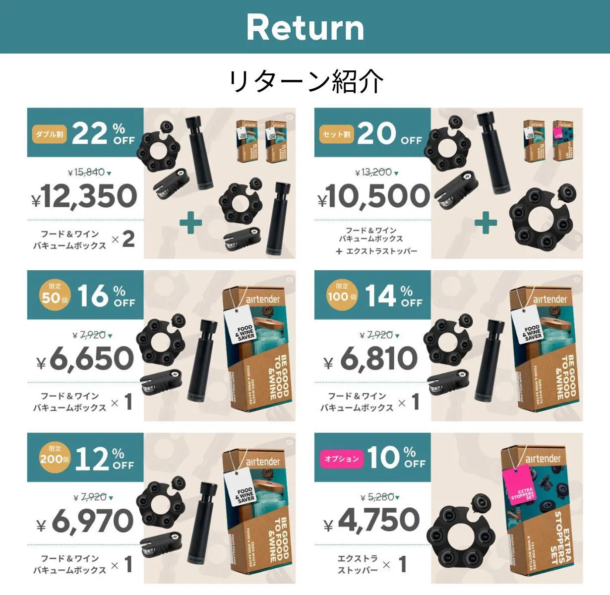 ●リターン価格:各リターン記載の通り *商品内容についてはリターン欄記載の通り