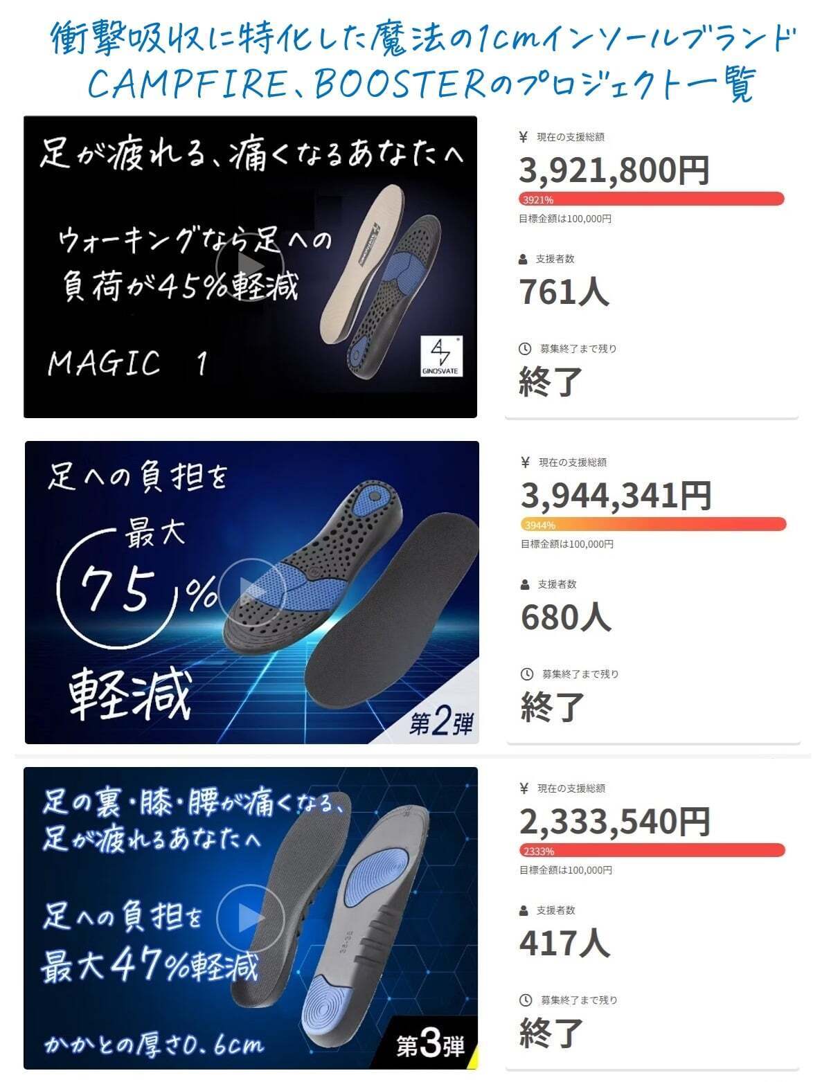 衝撃吸収に特化した魔法の1cmインソールブランド、M1インソールはクラウドファンディングでのべ4,000人以上の支援者様にご支援をしていただきました。