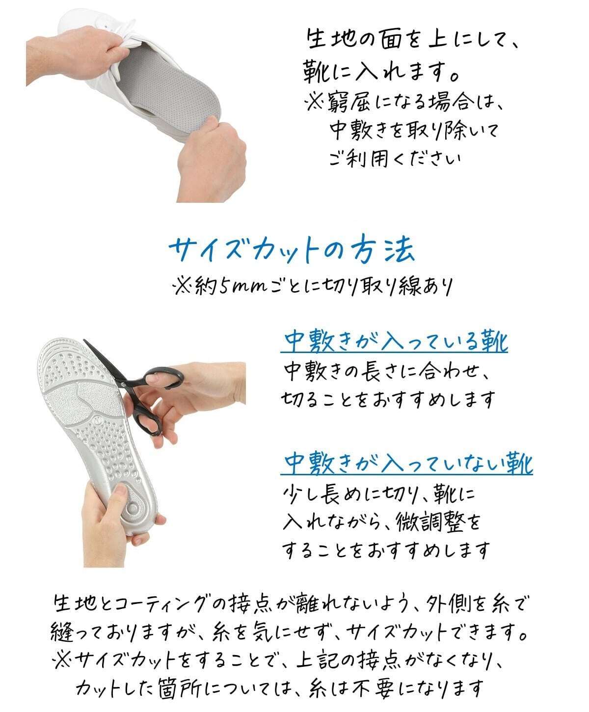 ※かかと中心部の厚さが1cmのため、ジャストサイズの靴、紐で調節のできない靴でのご使用は、窮屈になったり、ご使用いただけない場合がございます