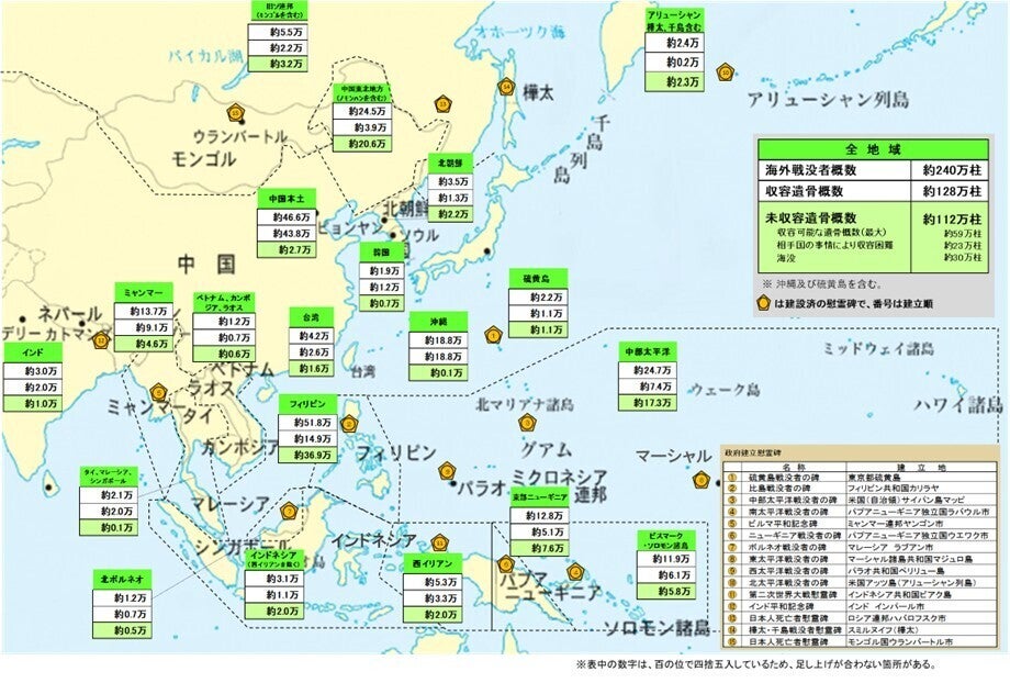 地域別戦没者遺骨収容概見図:厚生労働省HP参照