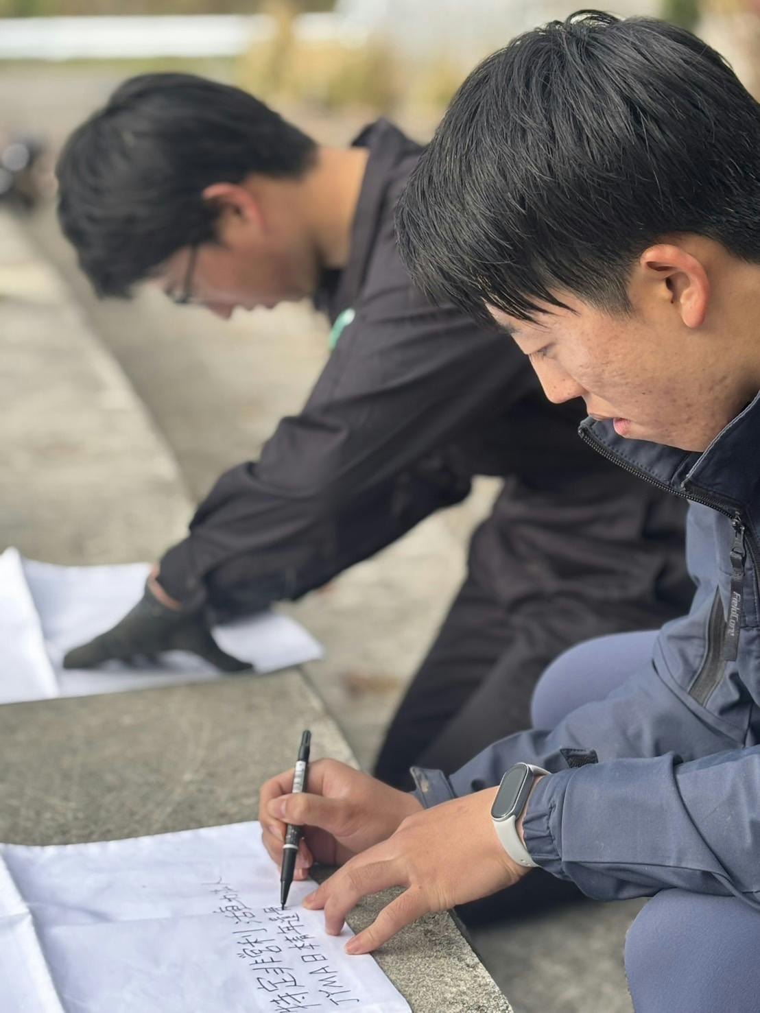遺骨引渡に必要となる袋に必要事項を記載する学生ら