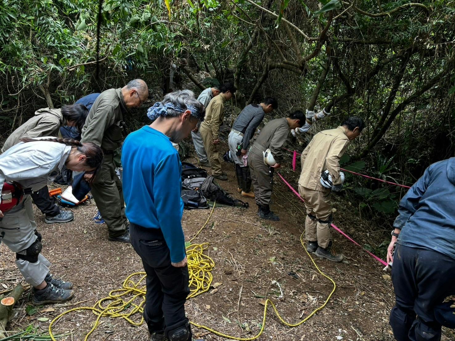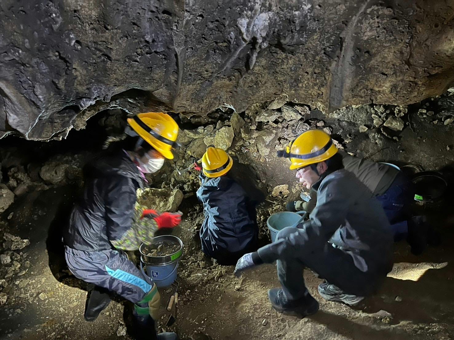 暗く狭いガマ内部でも慎重に活動を実施した