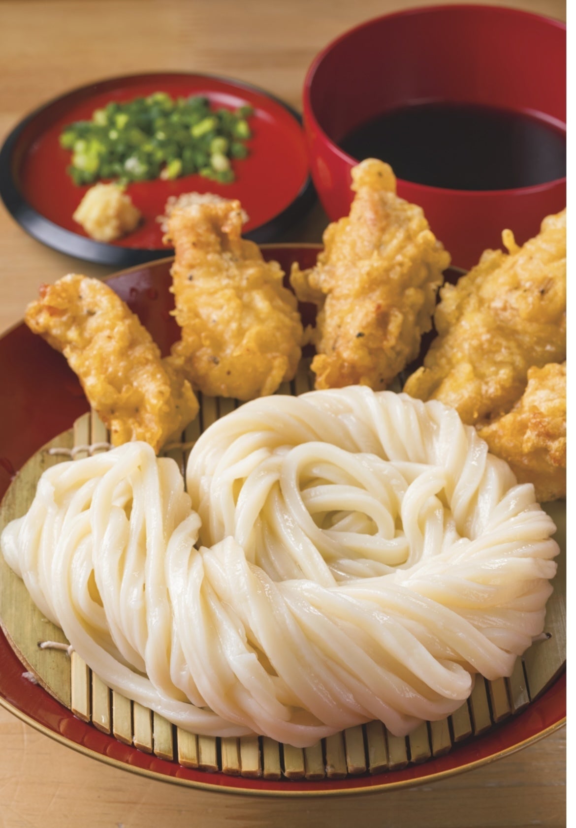 山梨県産信玄鶏のササミを使用した鮮度抜群のかしわ天はうどんよりも驚かれることも多い当店で大人気の一品。鳥刺しにもできるほどのフレッシュさと、重すぎずパサつかない柔らかな食感と肉の旨みが、つゆと麺に最高に合います。
