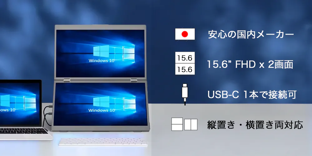 15.6 inch FHD×2画面を軽快に片手で持ち歩き、モバイルで快適にご活用ください。
