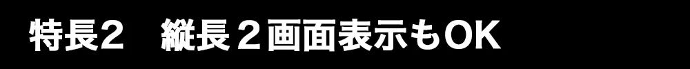 ソースコード、Webデザイン、株式トレーディングなど様々なシーンに適しております。縦積み2画面(横長の画面)だけでなく、縦長2画面表示にも対応ですので、ディスプレイを縦長に表示したいシーンにも便利です。