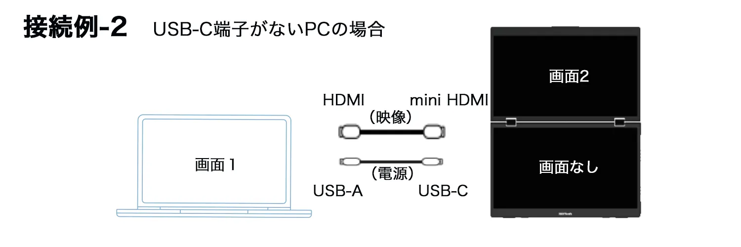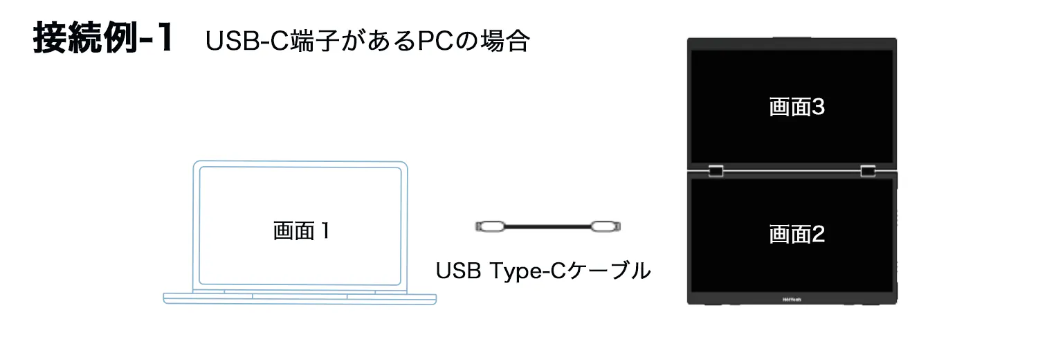 Q) USB-Cケーブル1本だけで2画面表示できますか?