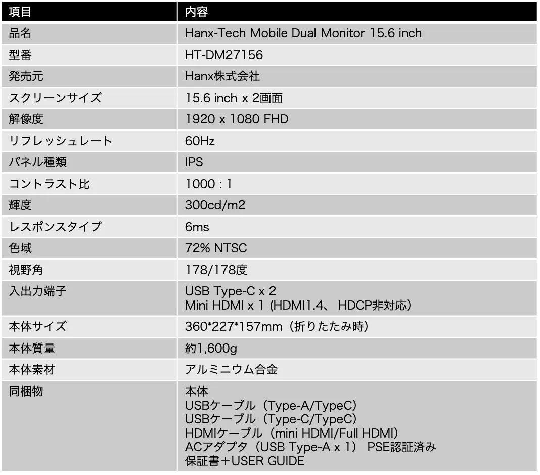 携帯性を追求したこだわりの業界最軽量クラス 15.6 inch FHD(Full High Definition)×2画面が1.6kg!