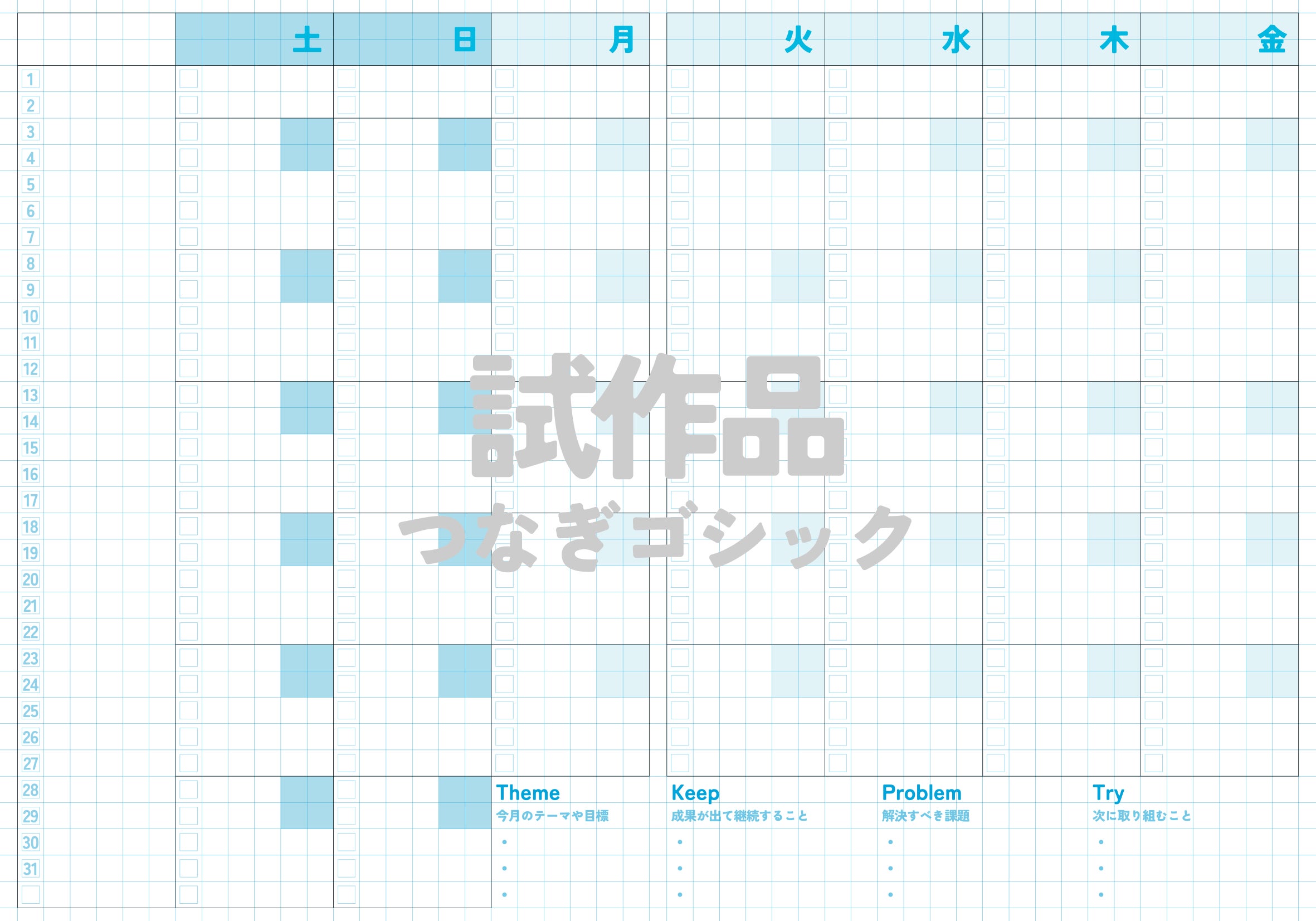 最初はとりあえず土曜はじまり手帳のロゴと同じ「つなぎゴシック」というフォントで作っていました。ロゴやページタイトルくらいなら問題ないのですが、文章になると太すぎて読みにくいし、やや子どもっぽい印象になります。