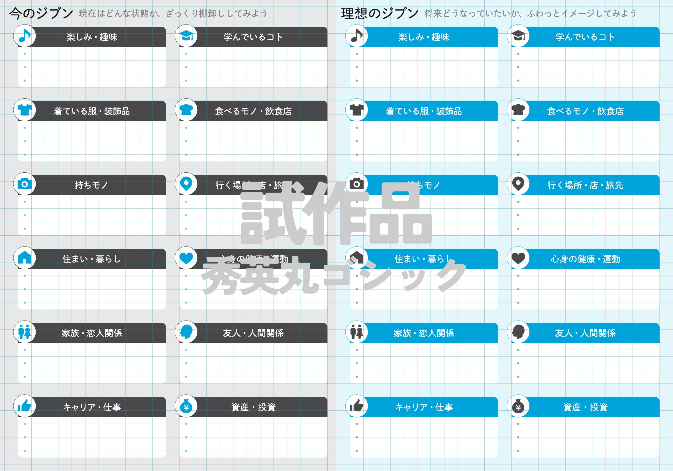 ワークシートは、自由度のバランスが難しいです。自由すぎるとどう使っていいかとまどうし、ガチガチに使い方を縛ると個人のニーズに合わなくて使いにくくなるし… これはいい感じでバランス取れた気がします。