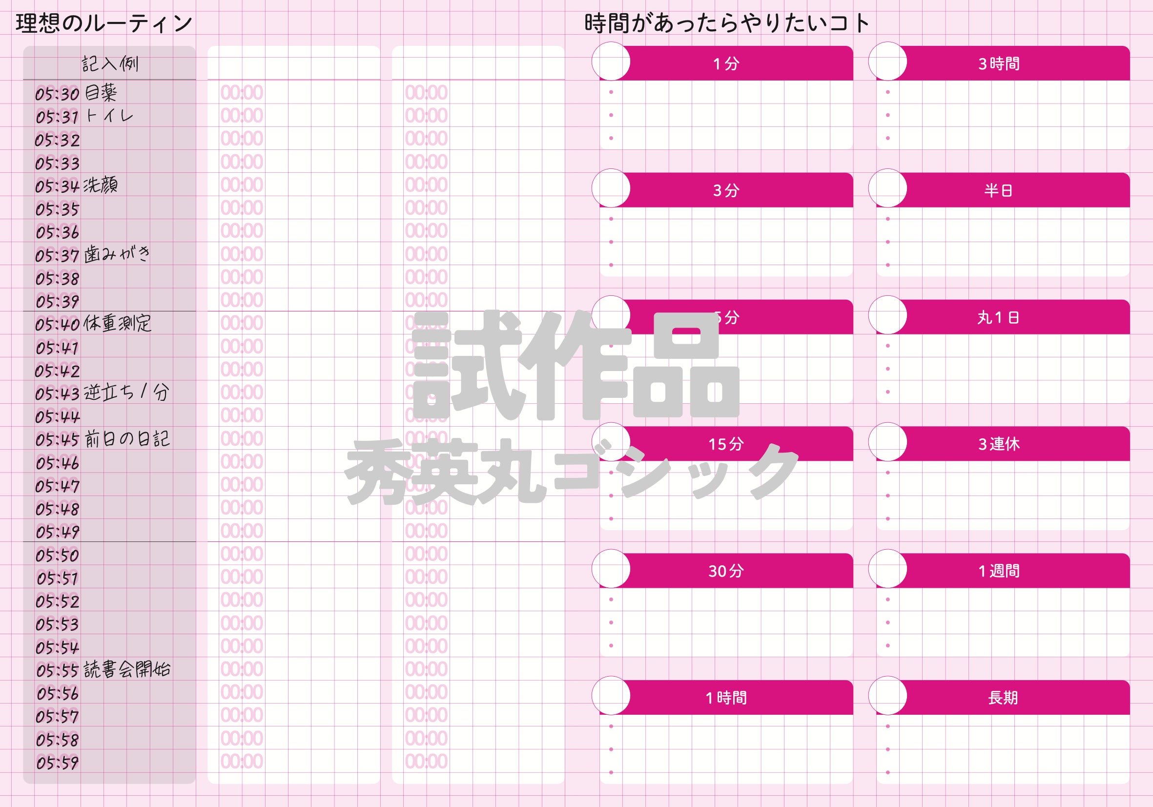 個人的に、生活リズムが変わるたびにモーニングルーティンのタイムシートを作ってました。時間があったらやりたいことリストは、最近自分用に欲しいなぁと思っていたシートです。疲れている時やイライラしている時って頭が回らないから、手軽なリフレッシュ方法をメモしておくととっても助かりそう♪