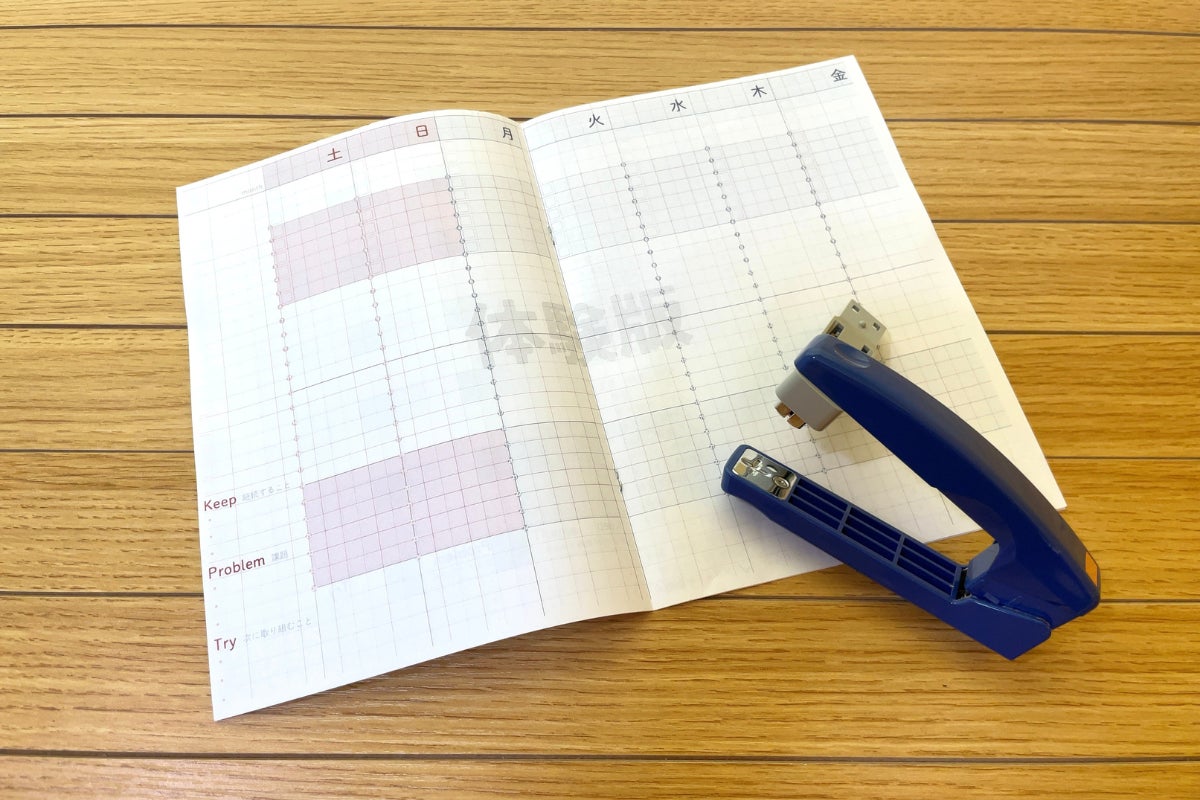 半分に折るだけでも大丈夫ですが、中綴じできるホッチキスがあればなおよしですね。