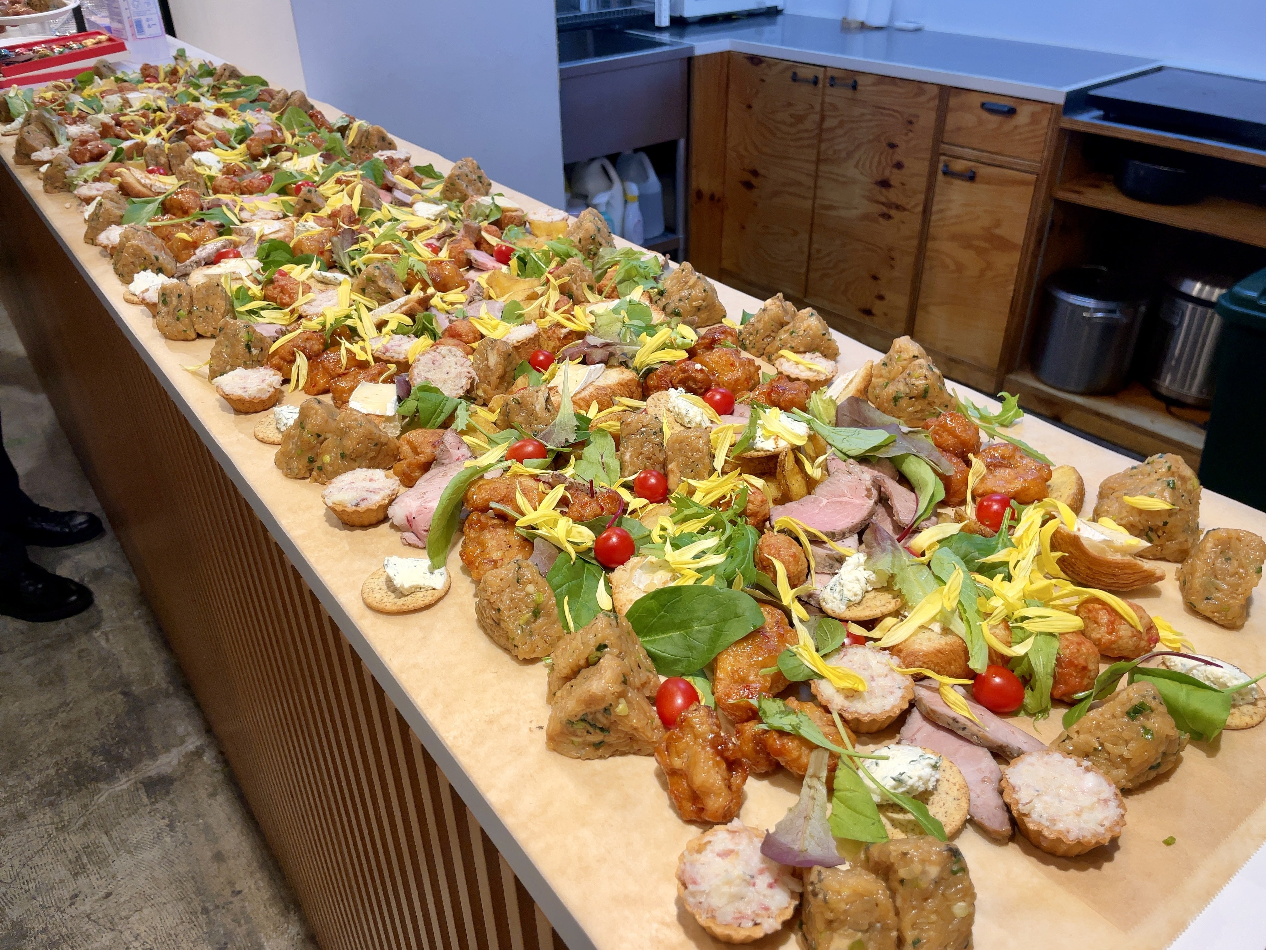 お料理は、高田大雅さんによるケータリング。やっぱり華やかでステキだし、とっても美味しい!どこからお料理をとってもいいからテーブルの前に渋滞ができませんし、片付けは下に敷いた紙をくるくる巻くだけでOKという、よく考えられてる仕組みなんです。パーティーに最適!またいつかお願いしたいな。