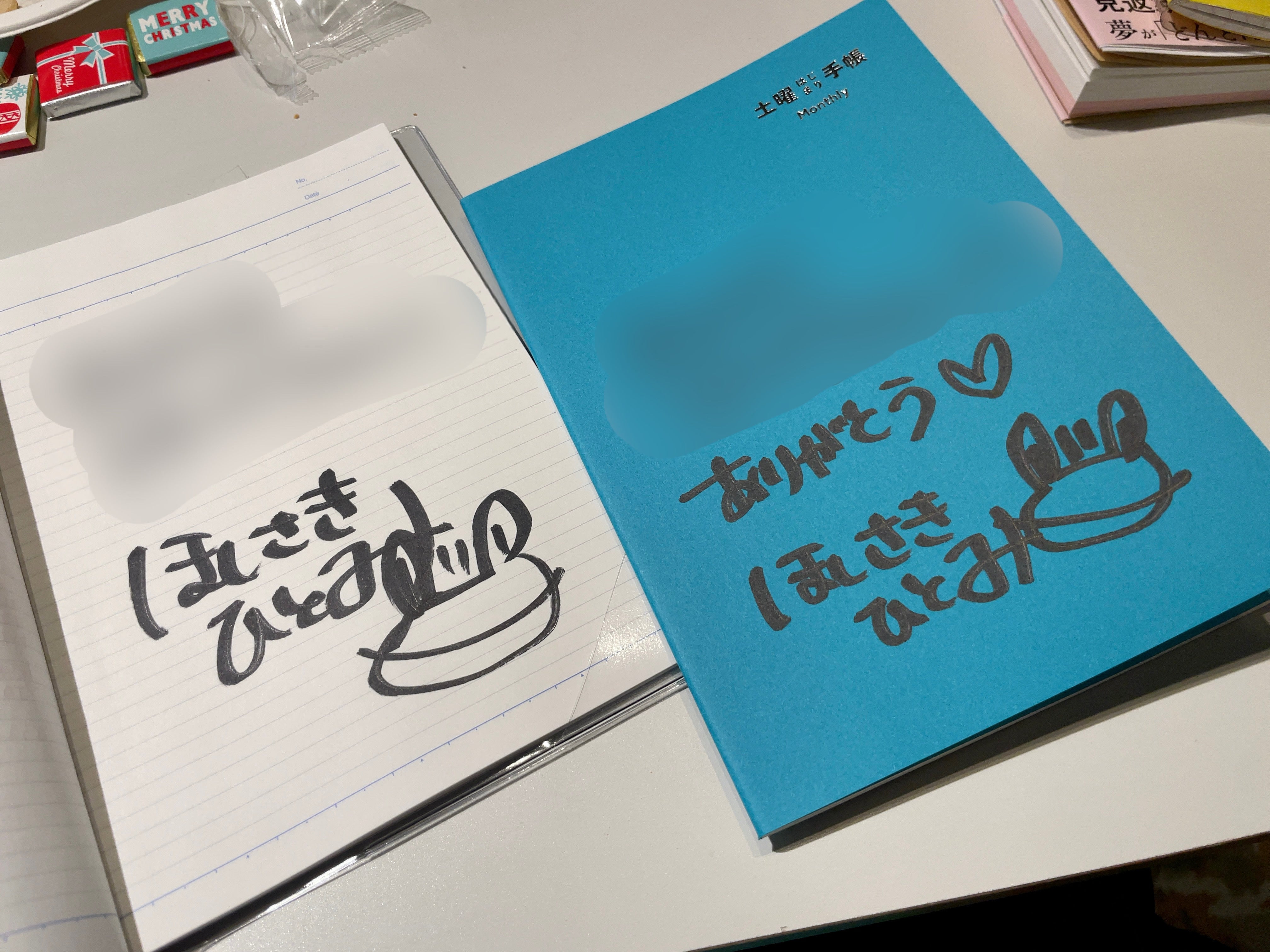 びっくりしたのが、たまたま通りがかりった親子が飛び入りでいらっしゃって、その場で土曜はじまり手帳を気に入って買ってくださったこと!生まれて初めてサインをお願いされて、その場で練習して書かせていただきました。はずかし〜〜〜/// いやいや、感動しました。ありがとうございます!