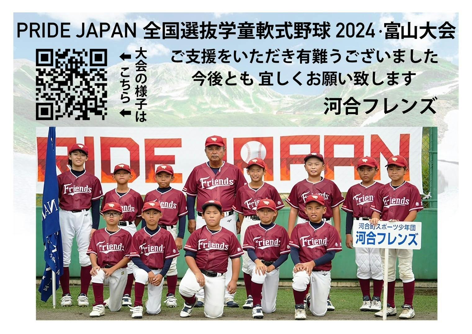 8月16日から19日 プライドジャパン全国選抜軟式野球2024富山大会参加