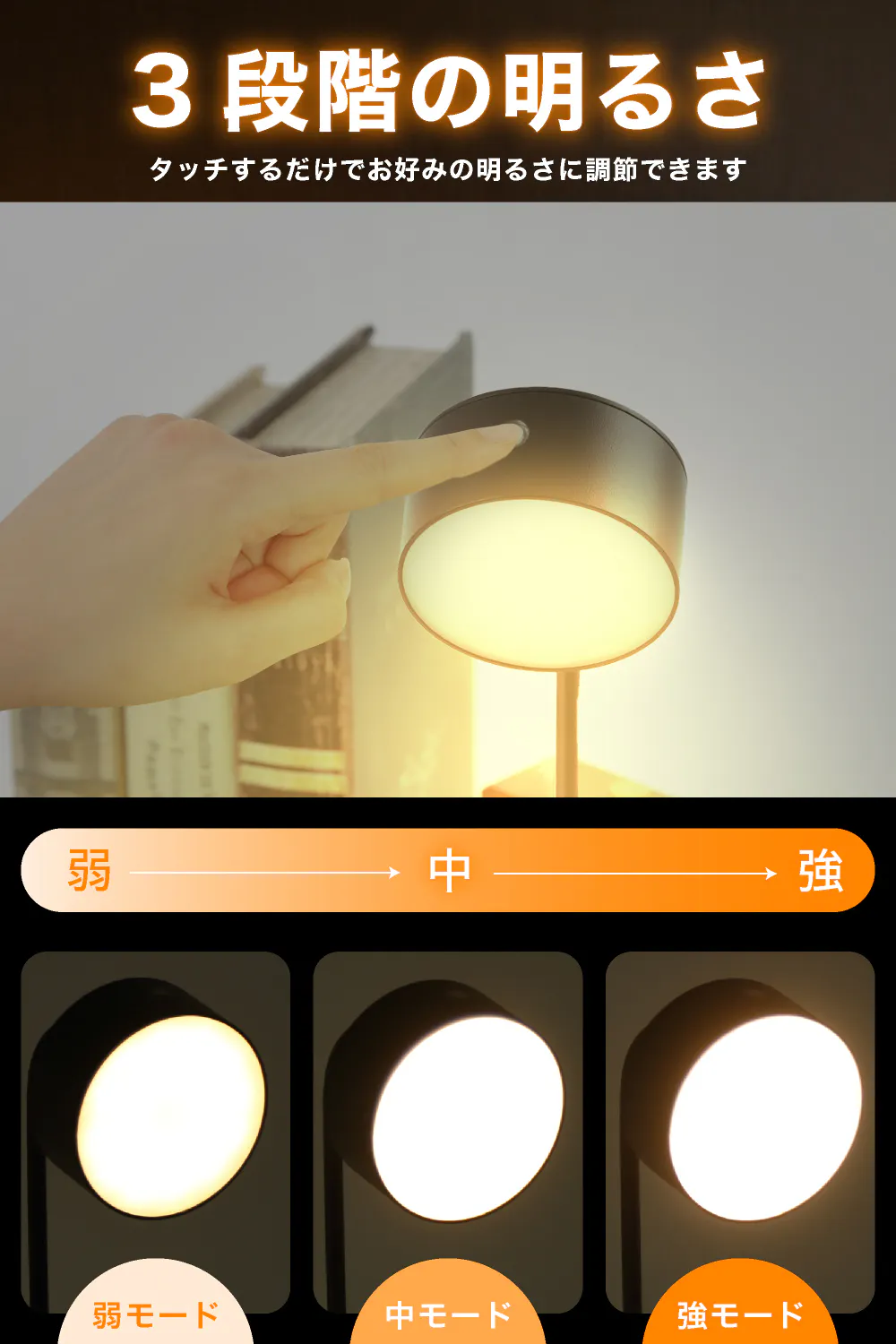 ・電源ボタンをタップするだけで3段階で、温暖色の調光ができます!