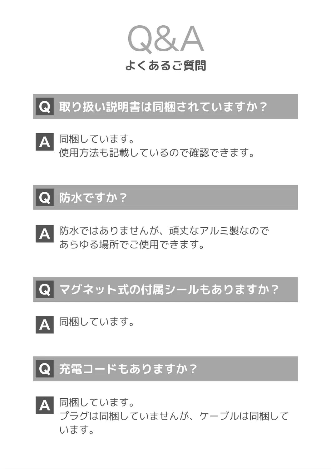 ・製品の出力:製品に応じて消費電力:3W定格入力:5V 1A(5W)