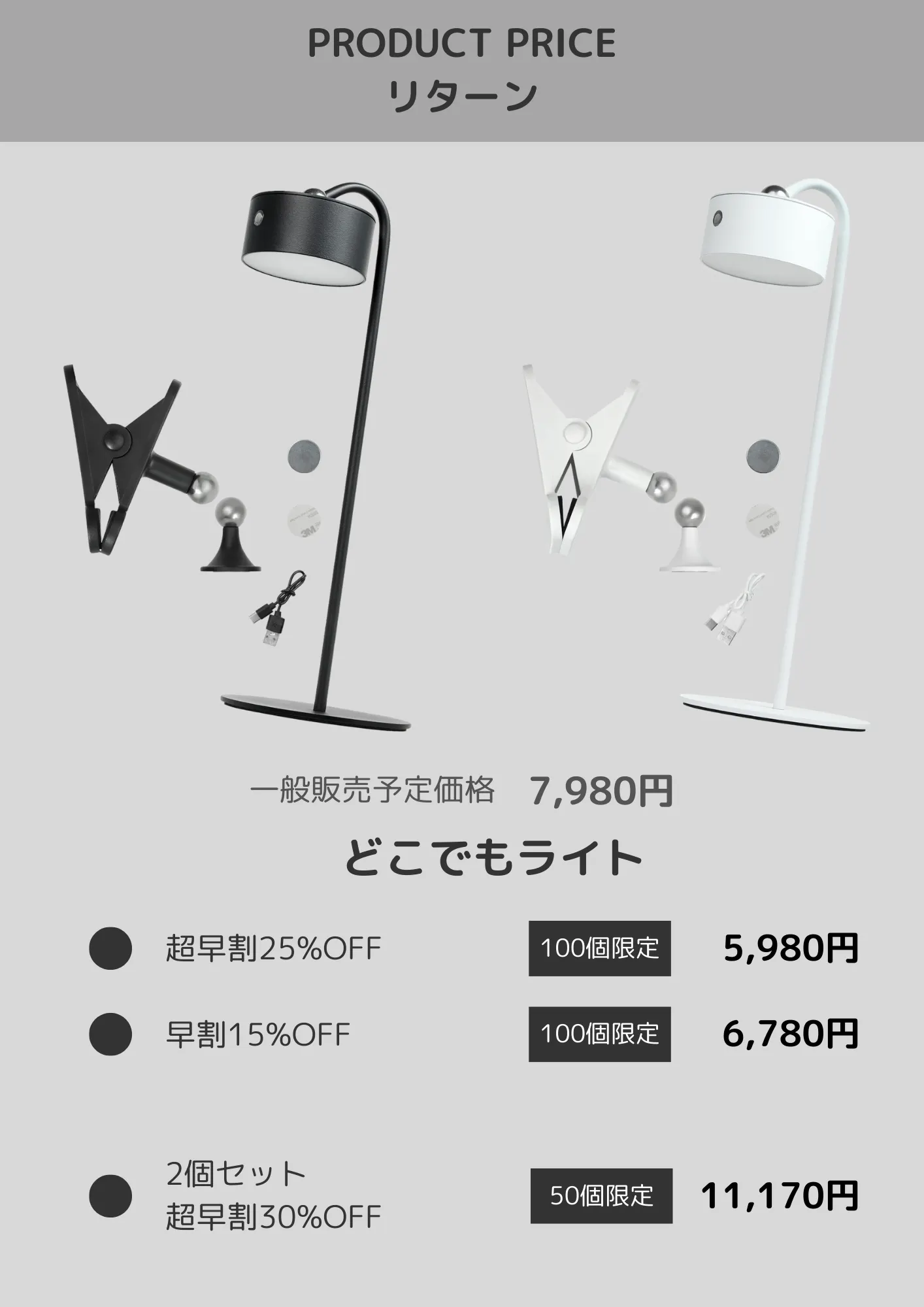 ・商品名/個数:3WAY式どこでもライト/300個