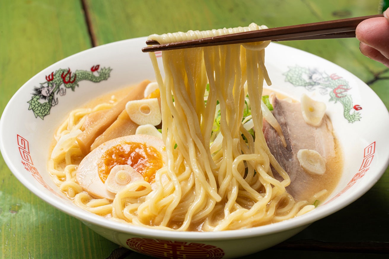味噌は青森の津軽味噌を使用し、田子にんにくとのバランスを取るために、魚介、鶏ガラ、豚骨のスープをブレンドしました。麺は、スープに合わせた中太麺です」と話してくれました。