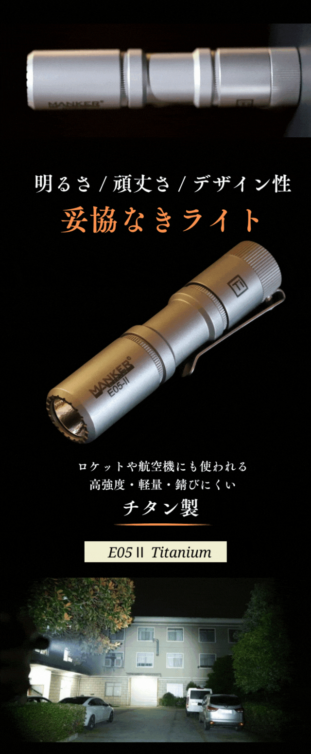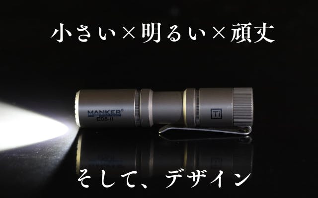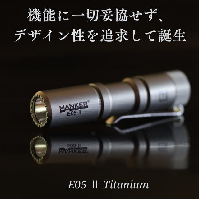 6500K高輝度LED搭載のクールホワイトに加えて、新たに日亜製519A LEDを搭載したニュートラルホワイトをラインナップした『E05ⅡTitanium』は、よりかっこよく、より明るく進化したMANKERのハイエンドモデルです。
