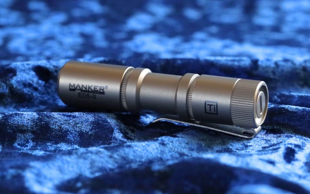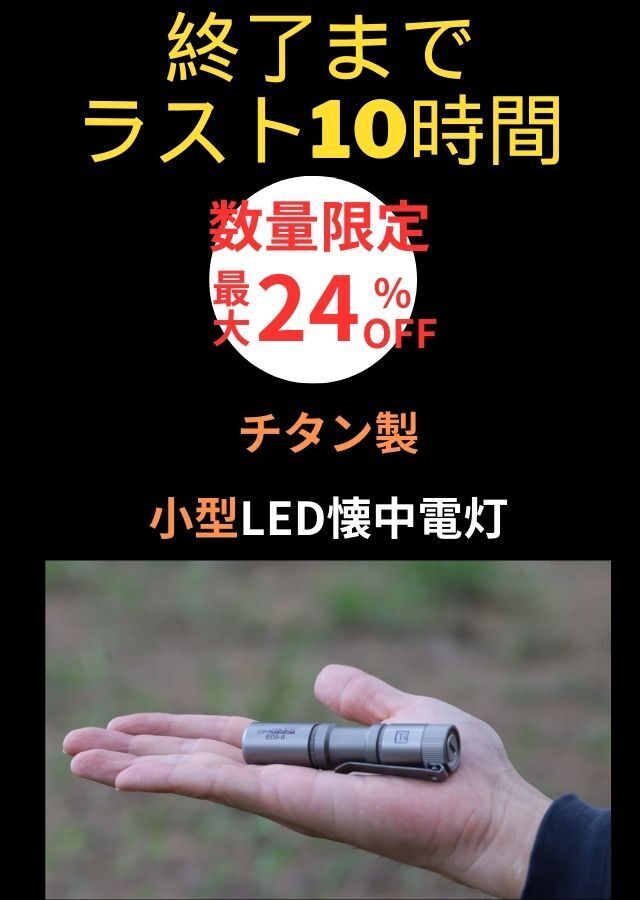 「デュアルバッテリー対応。広角かつ遠くまで明るく照らすチタン製LED懐中電灯」