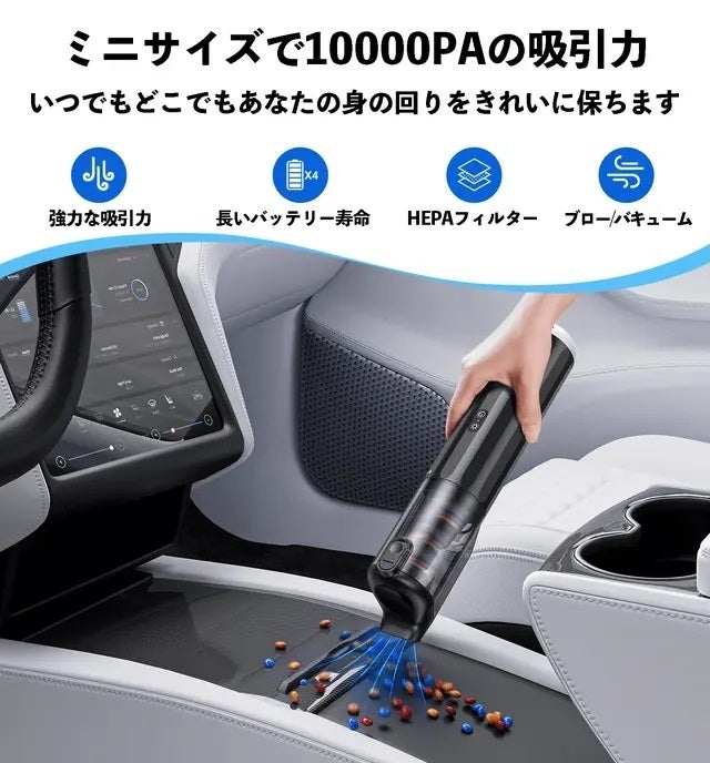 クリーナーでありながら空気入れにも、懐中電灯にもなるので車にひとつ置いておけば、災害時のいざという時にも安心です。