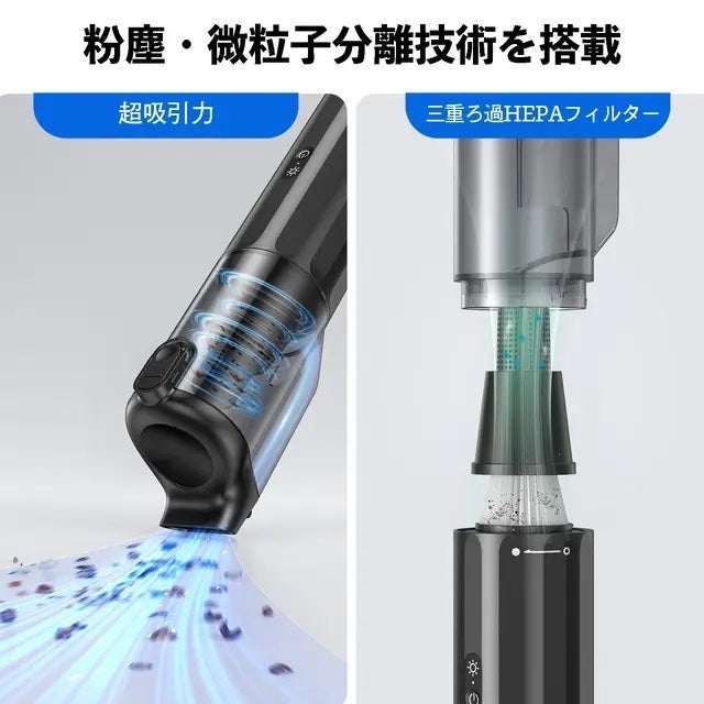 クリーナーでありながら空気入れにも、懐中電灯にもなるので車にひとつ置いておけば、災害時のいざという時にも安心です。