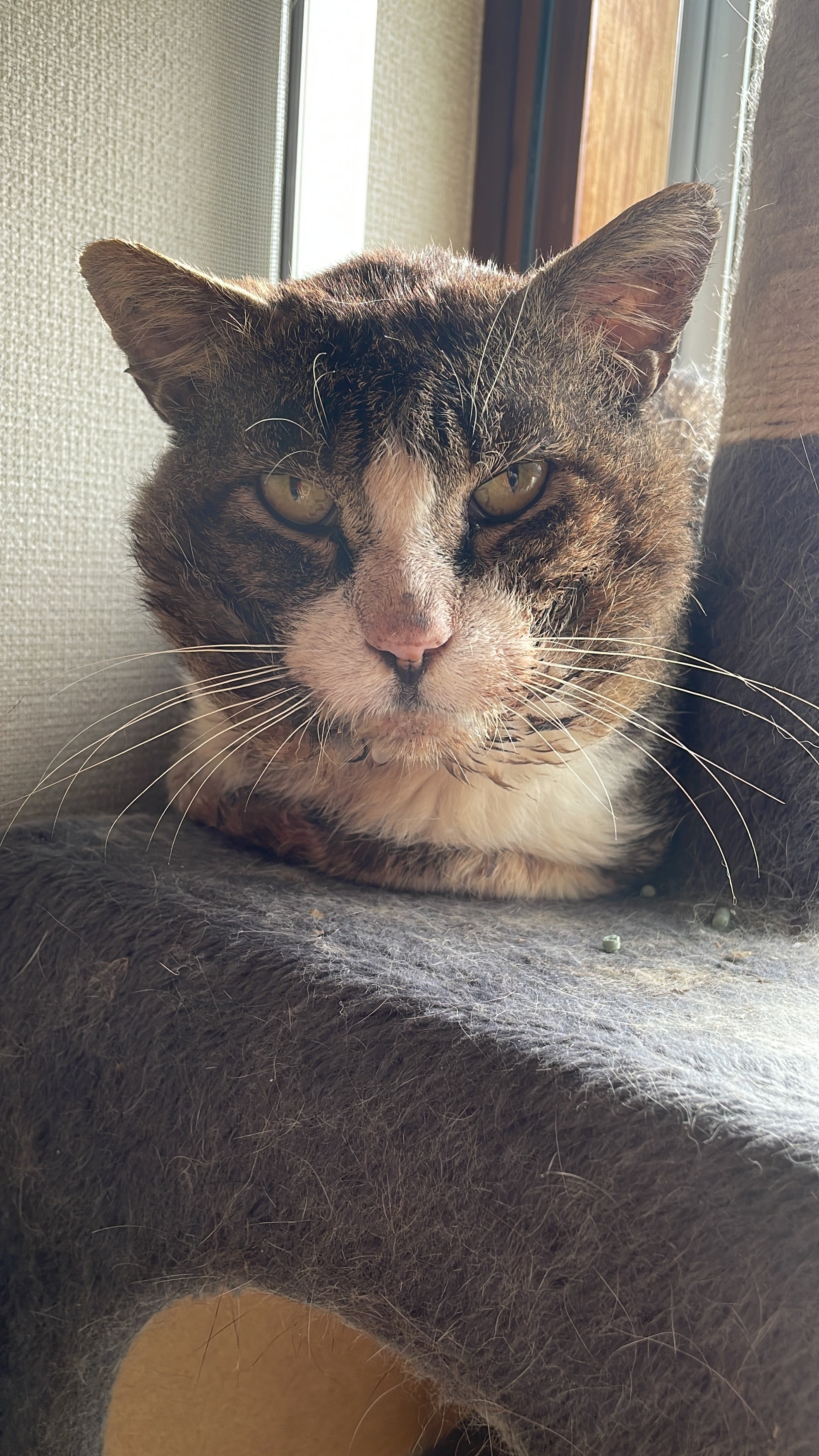 約2年に渡り警戒心の強い三毛猫は2回出産してしまいましたが、全てのお世話している猫達を避妊去勢手術すことに成功しました。その後独り立ちしてしまい、残った4匹を区画整理で実家が無くなるタイミングで、私が引き取り、共同生活が始まりました。引っ越しして約3年、、、3匹が虹の橋を渡り2匹の猫を救い、手術までして、2023年の11月エイズ末期のオス猫を保護しお世話してますが、障害者年金の収入でやりくりは難しく、かと言え里親にも出せません。私が保護した猫達の8割は10歳を超えていて、2割はオソソウ癖等譲渡出来ない猫です。