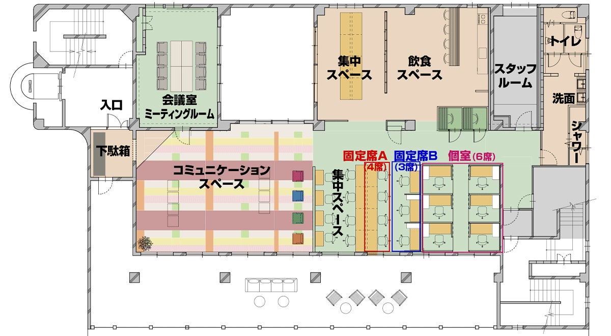 ゆったりとした空間、ソファーでリラックスしながら思考。静かに集中できる席、外の風にあたれるテラス席でアイディアが溢れ出る。気分と状況に合わせて働く場所を選択。 シリコンバレーのように創造的に働ける空間。プライバシーと交流のバランスがとれた環境で、自然なコミュニケーションが生まれる。自分の目標やビジネスアイデアを発表するプレゼン大会、資金調達するためのピッチ大会、WEBマーケティングセミナーやプログラミング教室、チャットGPT勉強会、事業計画作成セミナーなど、様々なイベントをやりたい!高校生や大学生がビジネスと関わる機会を作り、若い世代の夢を後押し、副業・独立・起業をサポート、中高年・シニア世代が新たなステージで活躍するためのリスキリング支援!など、やりたいことは盛りだくさん。1つずつ実現します。