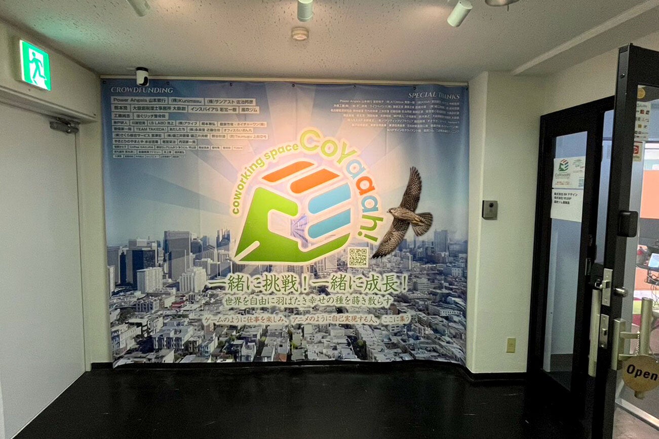 また支援していただいた方の名前を入れてCoYaaah!の入口に看板(ターポリン)の設置を予定してますので、その費用に使います。