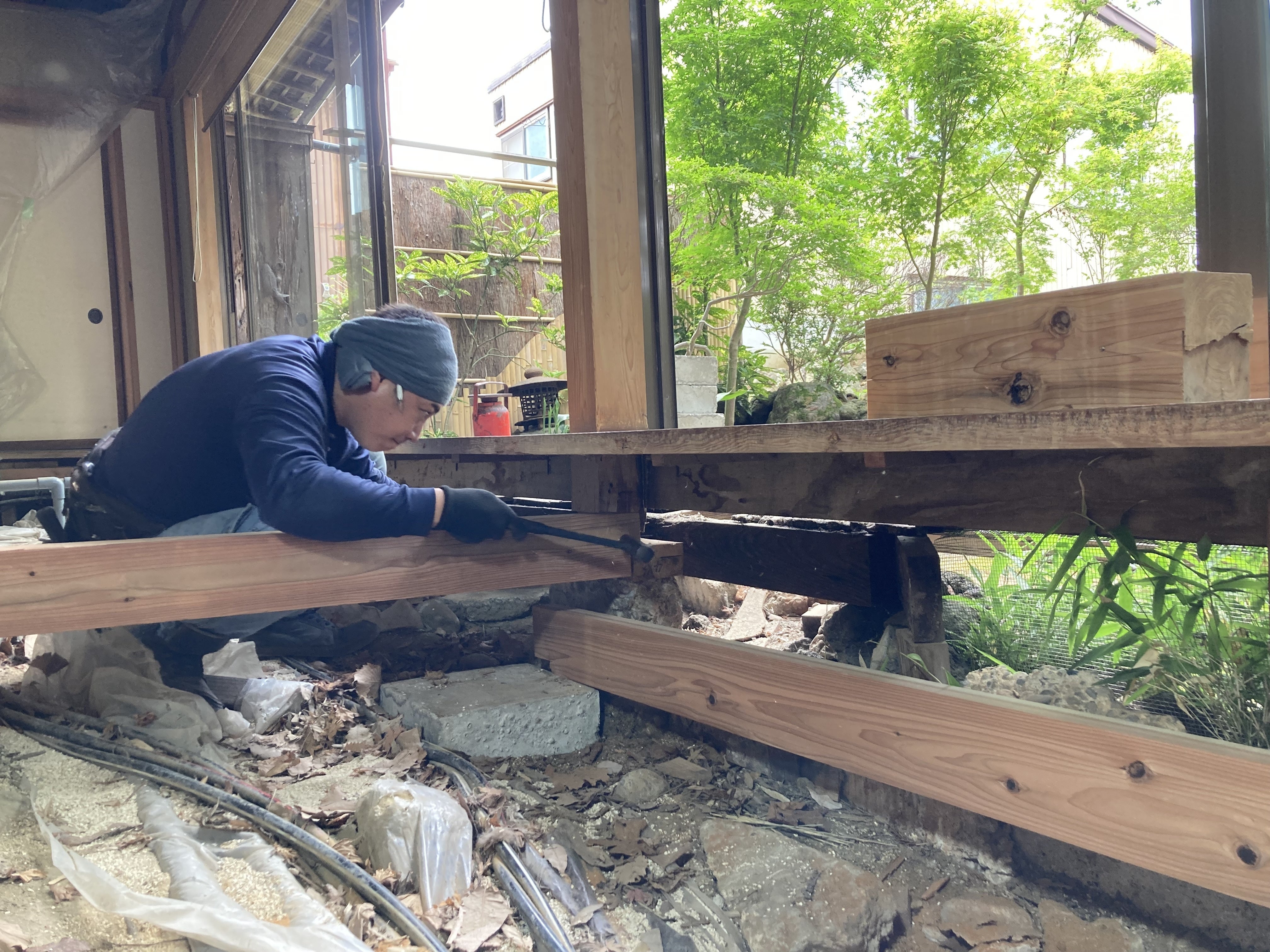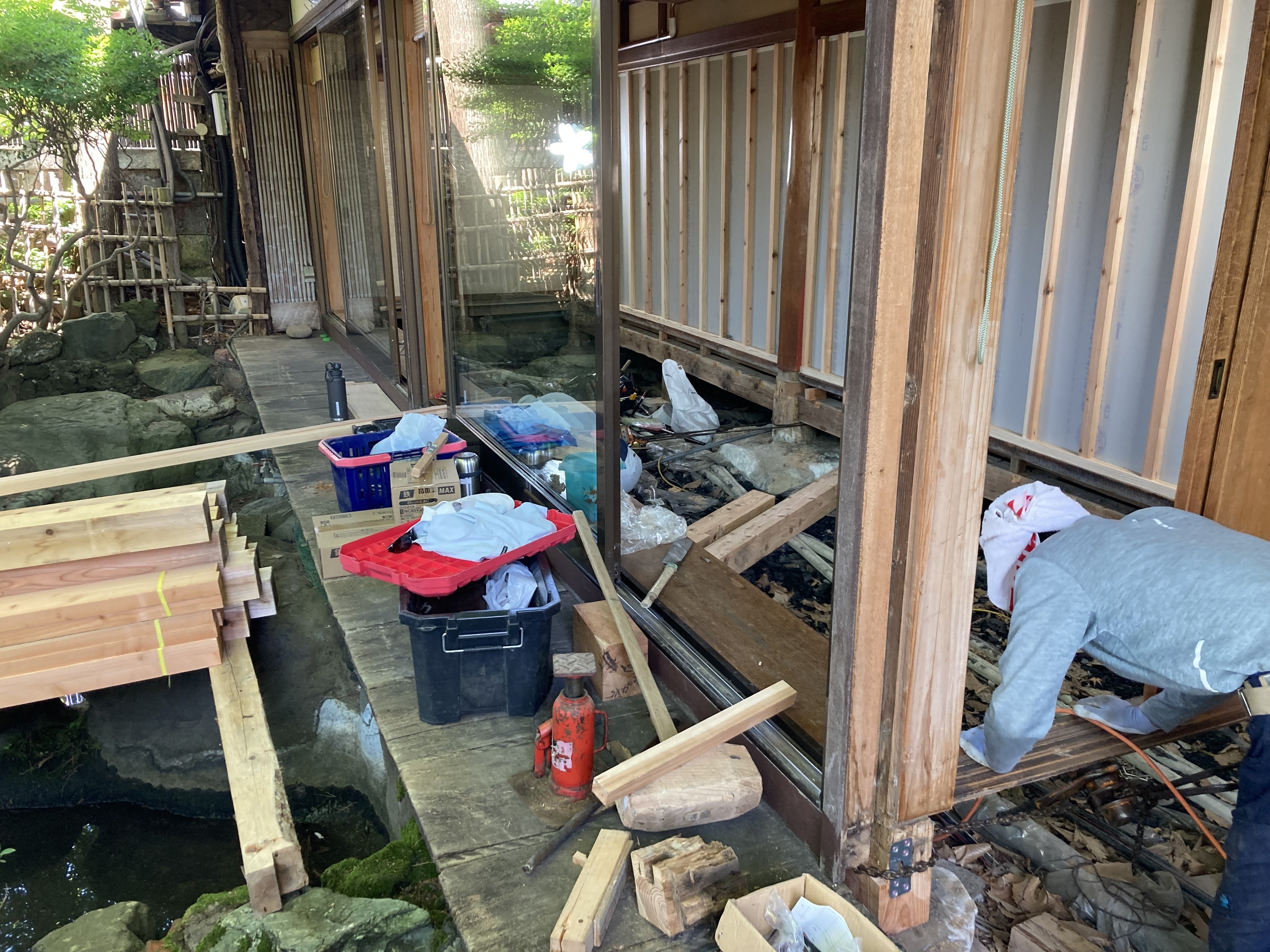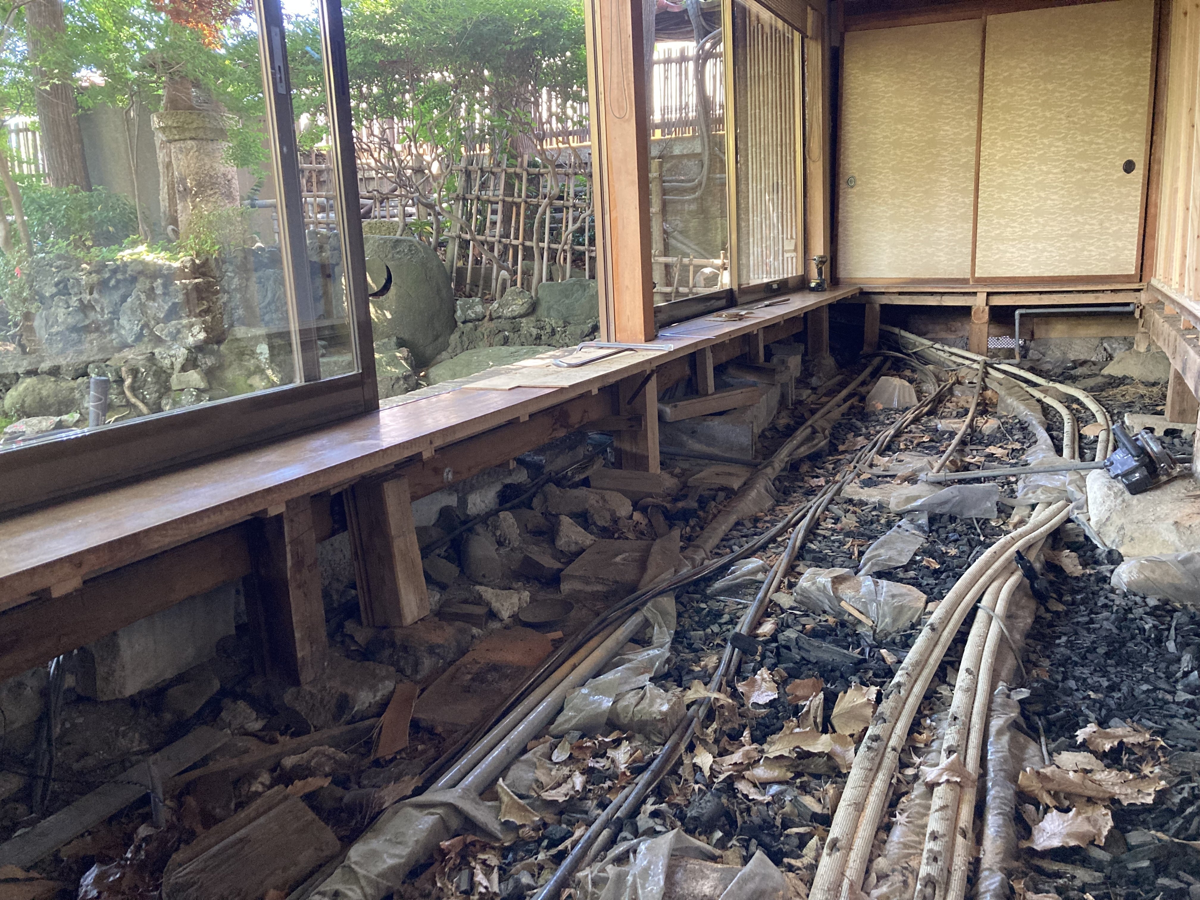 床も貼り終え、この後は窓枠の入れ替え工事に入ります。資材調達に多少時間がかかりましたが順調に進んでおります。
