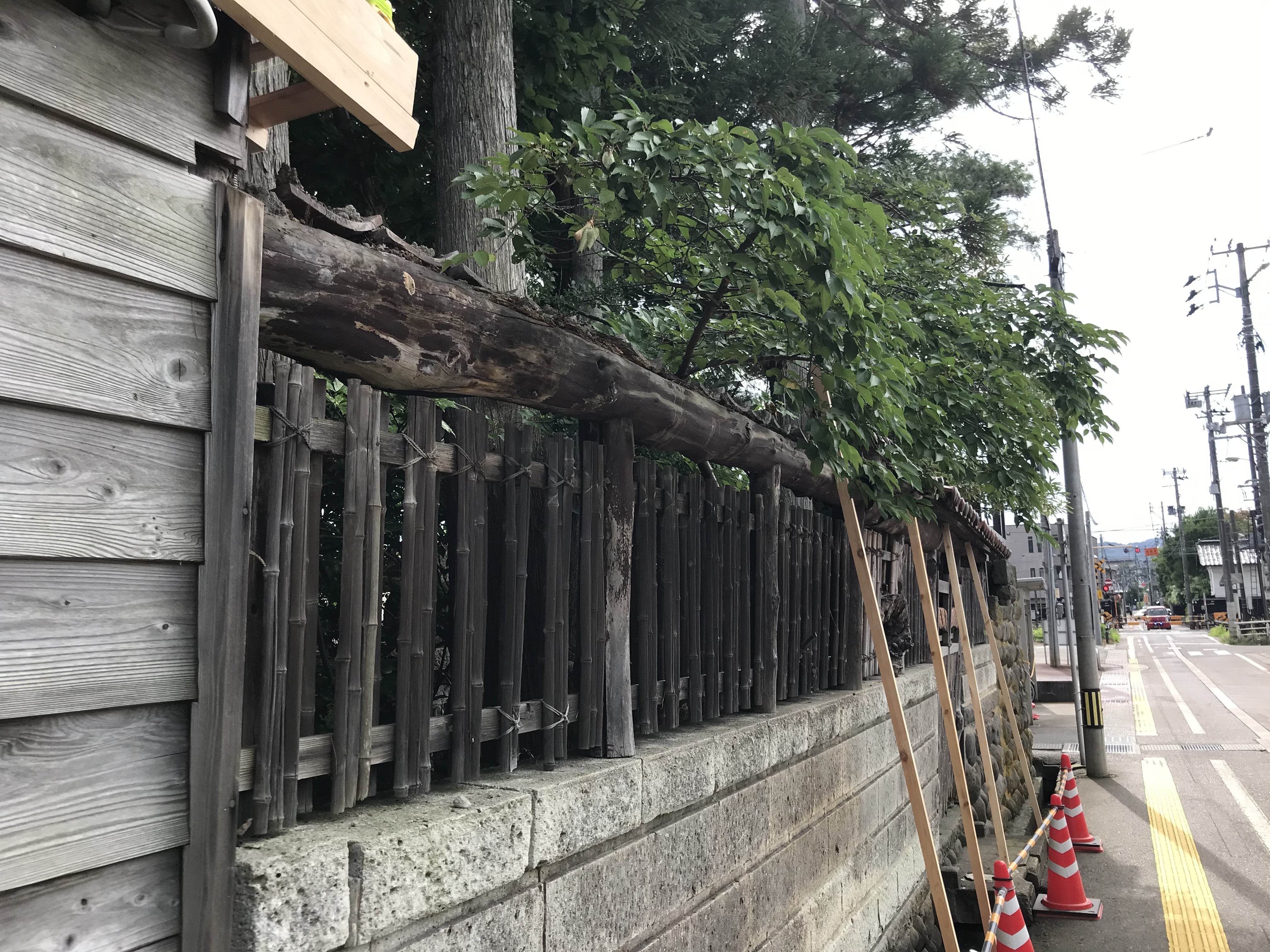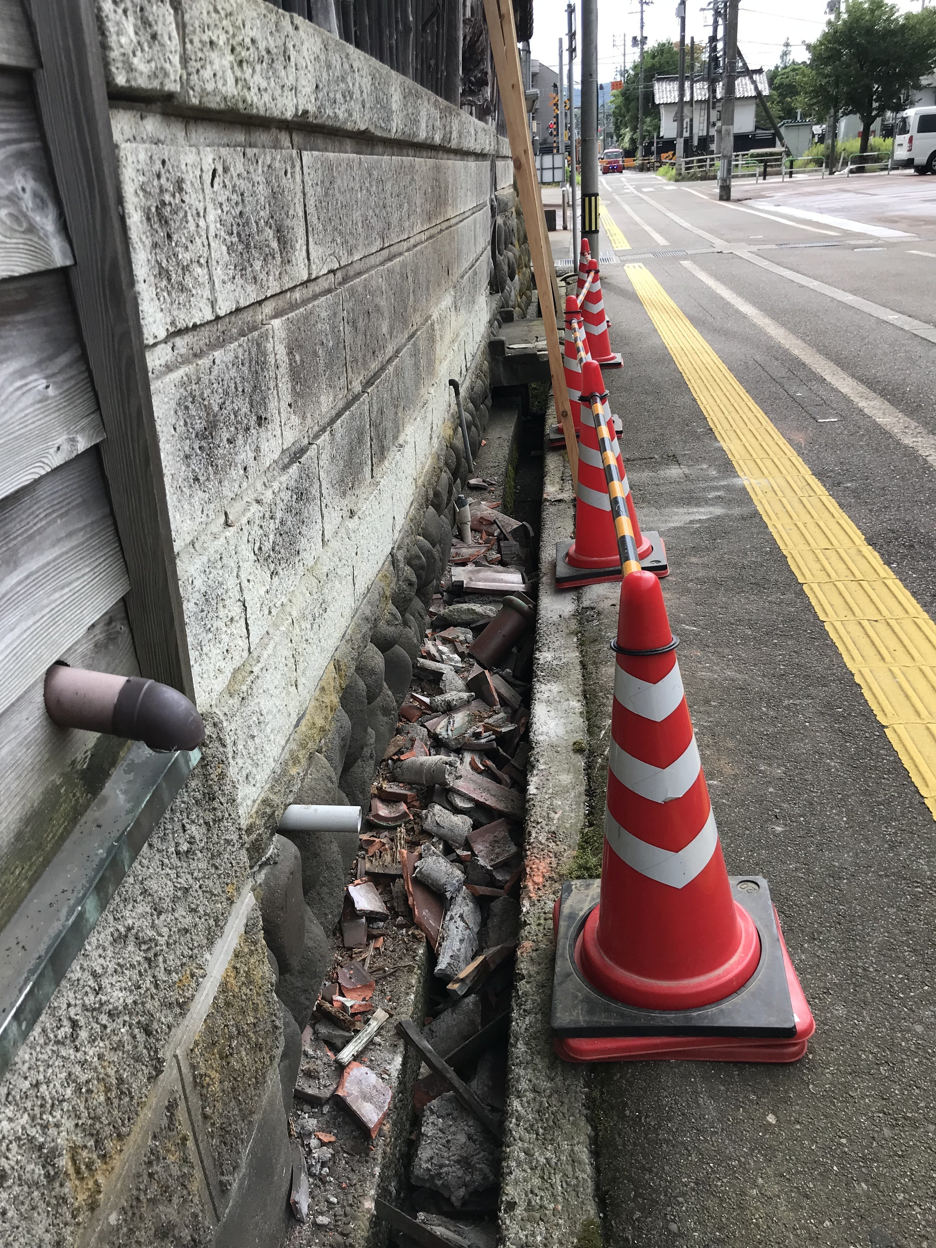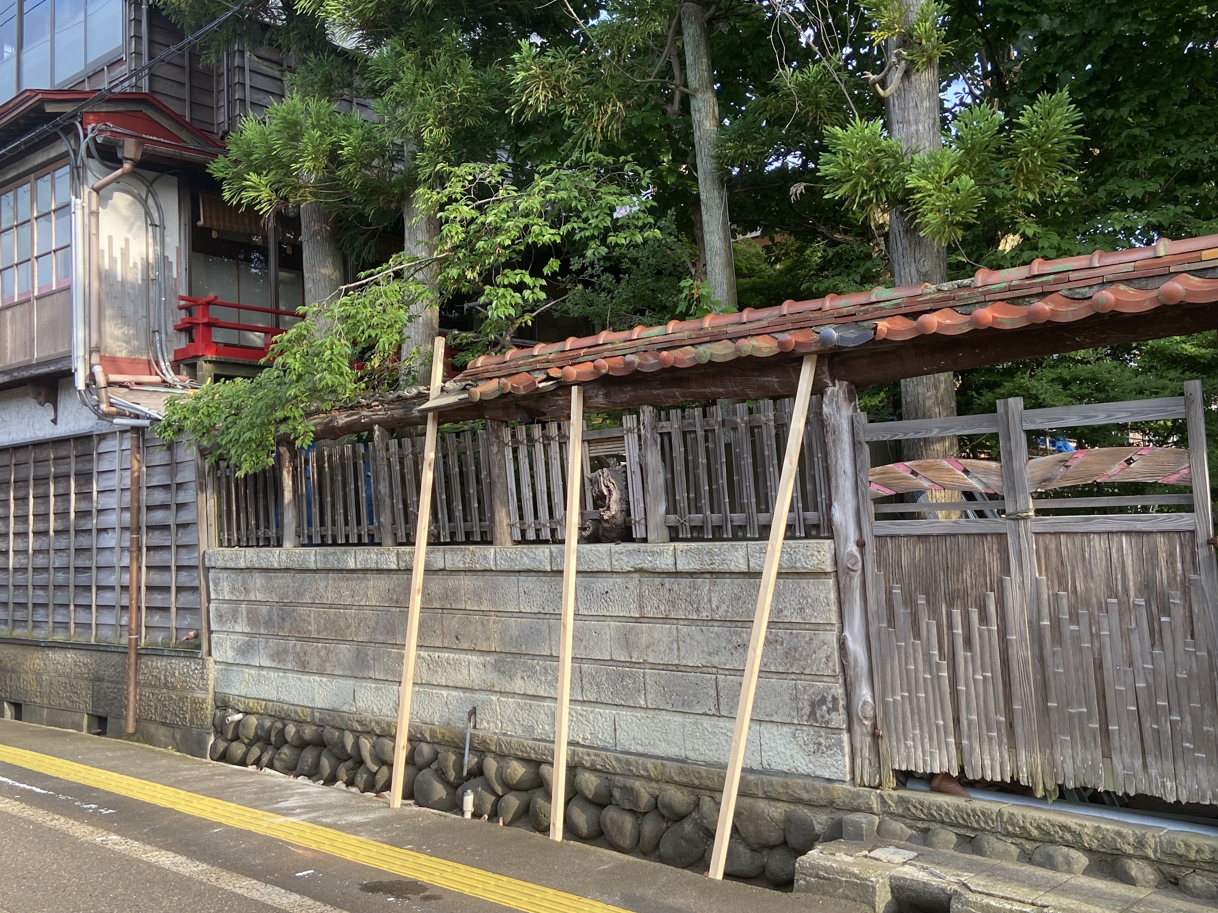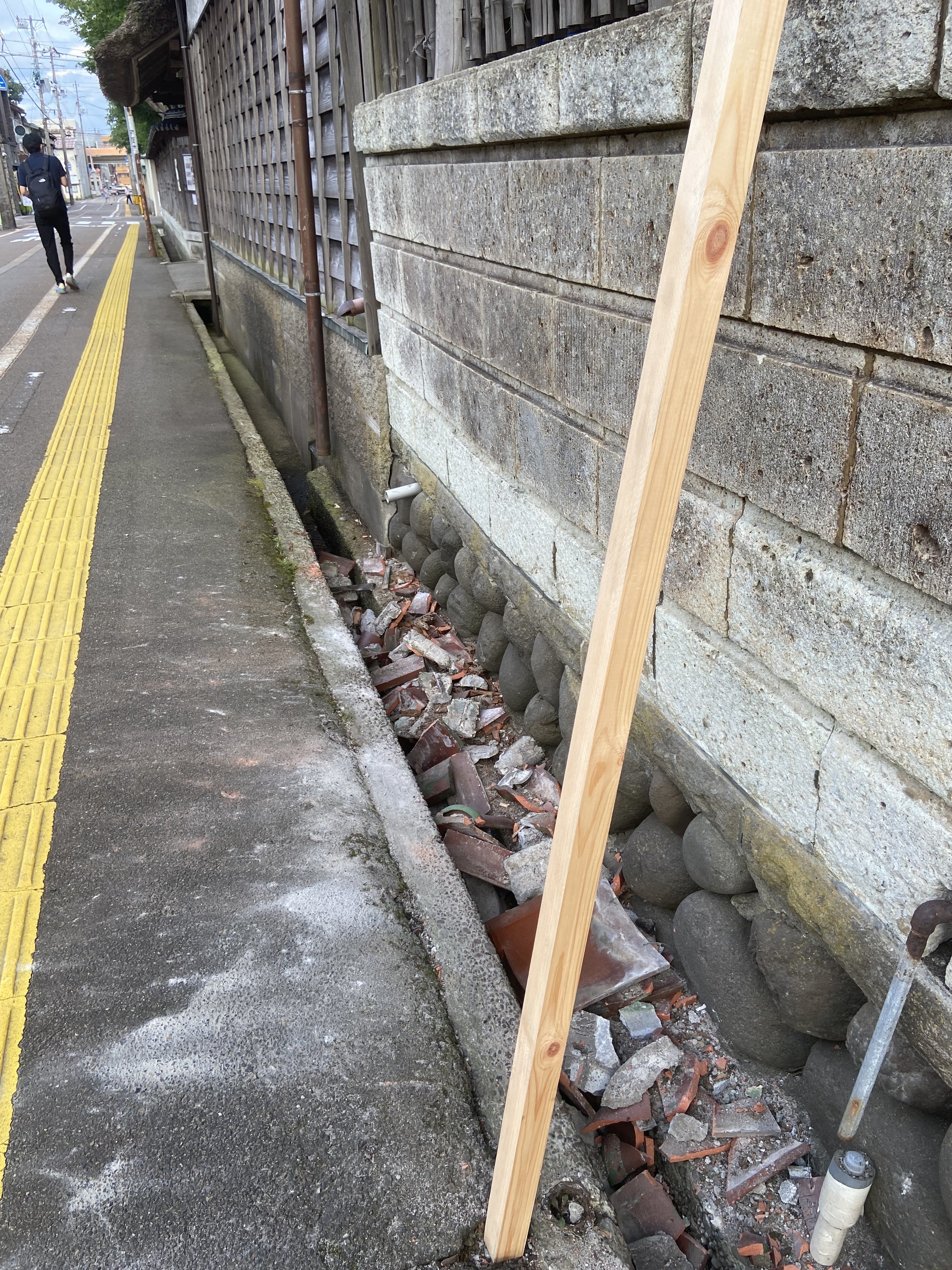 昨日、北側の塀の瓦が崩落しました。幸いにもけが人もなく一安心しておりますが、危険な状態なので今週中に瓦だけ撤去します。
