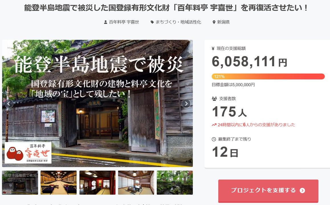 7/16よりプロジェクトをスタートし皆様のお陰で早々に目標金額を達成することができ、お陰様で今日現在で175名の方から6,000,000円を超えるご支援をいただいております。