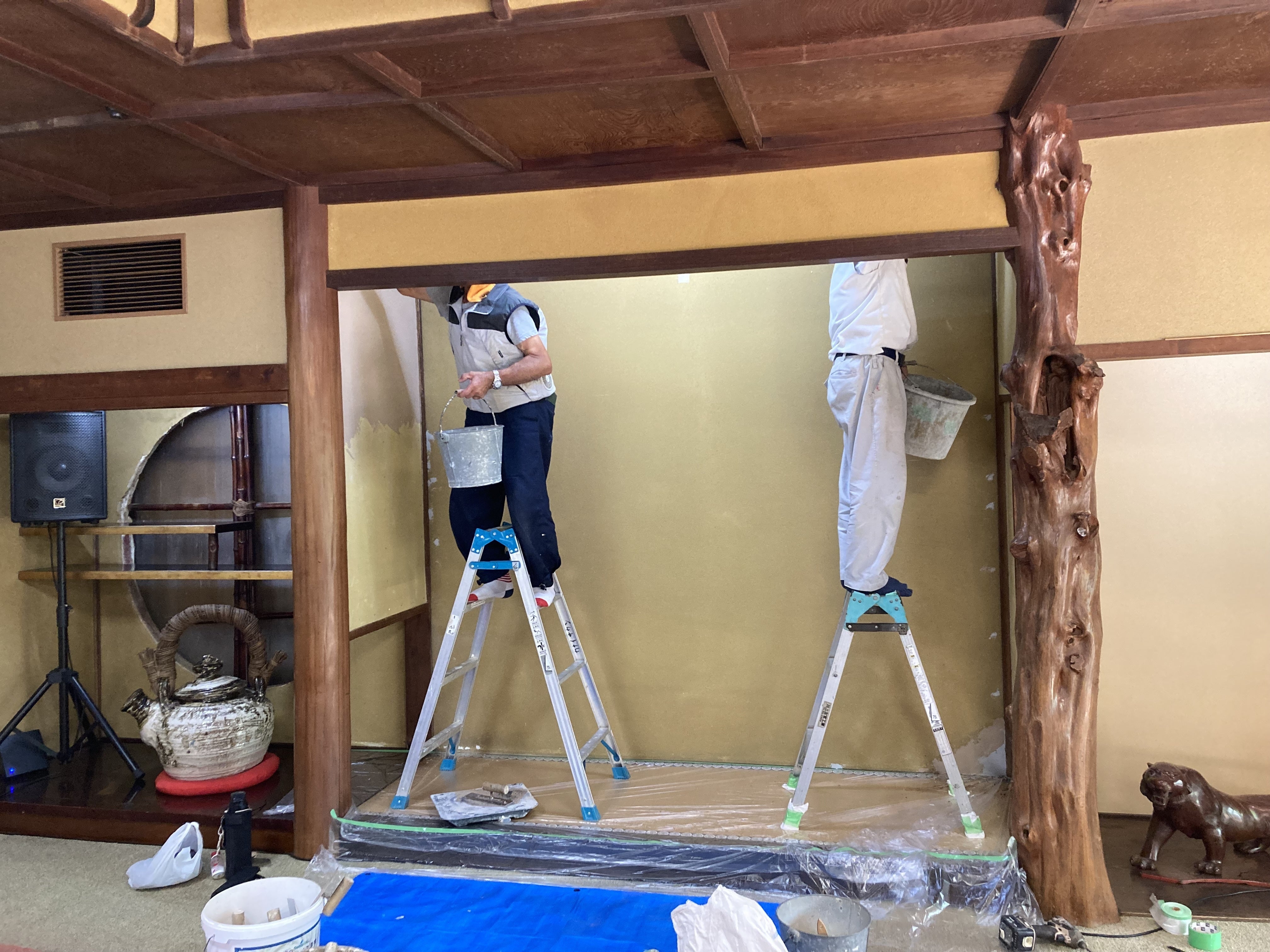 先日より「松の間」と「竹の間」の塗り壁工事が始まりましたのでご報告させていただきます。