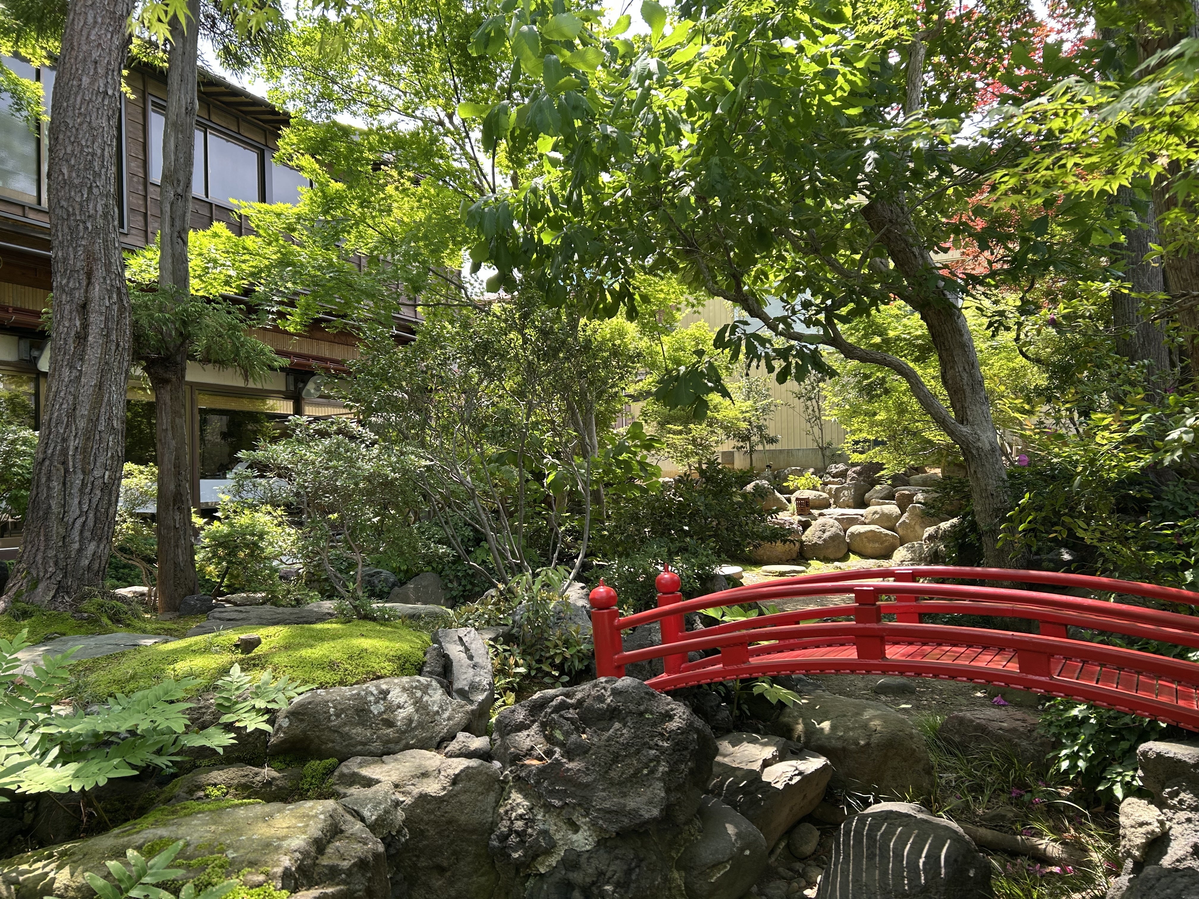 庭の中に入ると、かつて鯉が泳いでいた庭池には、新たに糸魚川の石灰砕石が敷き詰められ、庭全体の調和と広がりを感じられるデザインとなっております。高木の伐採後に植えられた若木も、春の訪れとともに存在感を見せ始め、今まさに、青葉の美しい季節を迎えております。
