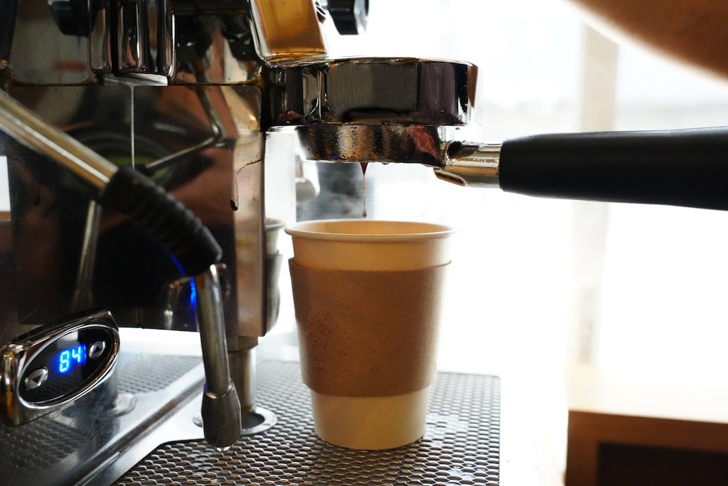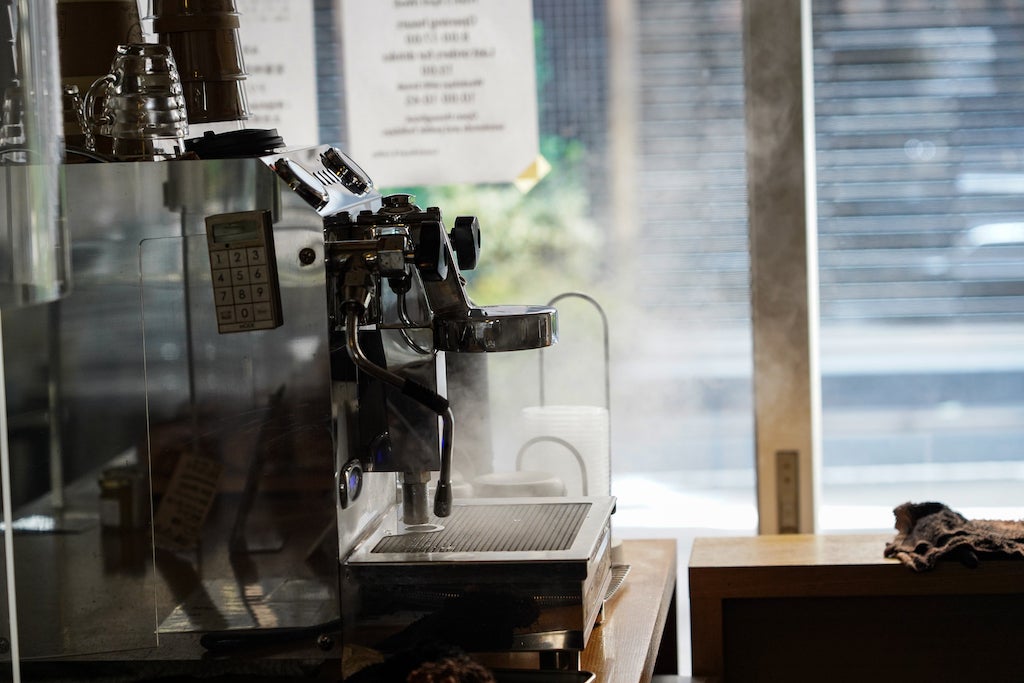 カワイイブレッド&コーヒーでは、店舗面積約7坪という狭さに合わせて、最小サイズの業務用エスプレッソマシンを設置しています。最初からパンもコーヒーも同等に高品質を目指していましたから、コーヒーサーバーで長時間温め続けたコーヒーを出すことはあり得ない選択でした。