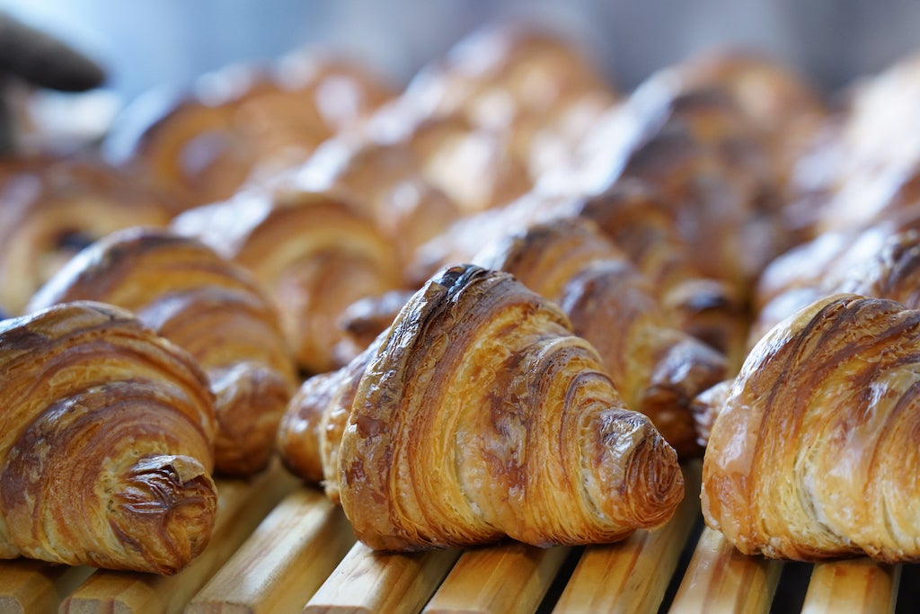 カワイイブレッド&コーヒーのイチオシ商品の一つ、クロワッサン。発酵バターと八丁堀サワードゥ、全粒粉を使ったアルチザンブレッドタイプ。かじるとサクッとしていて、しっとりとバターの風味が広がる.