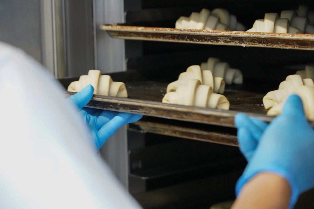クロワッサンの発酵を見極める.サワードゥで発酵させるため、前夜からの天候に左右されるから気が抜けない.
