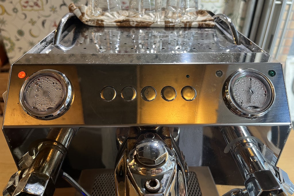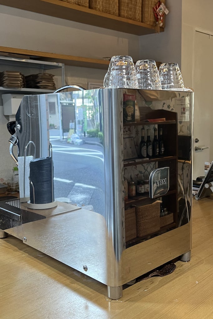 イタリアVBM社の小型エスプレッソマシン.ベーカリーに付随した小さなコーヒースタンドのために創業時に導入しましたが、10年目を迎え、ボイラーが老朽化して水漏れが止まらない状態