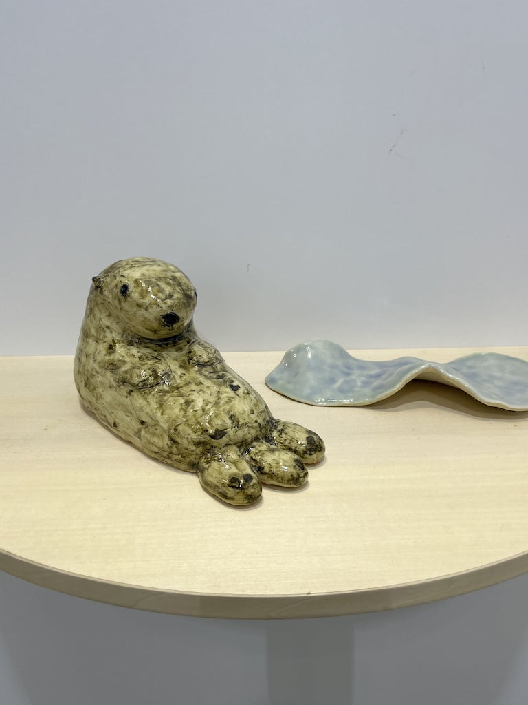 2024年7月5-7日に開催されたアートフェア「Tokyo Gendai」、Gallery Side 2のブースで展示されたムラタさんの新作。陶器による海カワウソと昆布の立体作品。