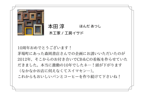冒頭でご紹介しているのは、工房イサドの本田淳さんから届いた応援メッセージです。
