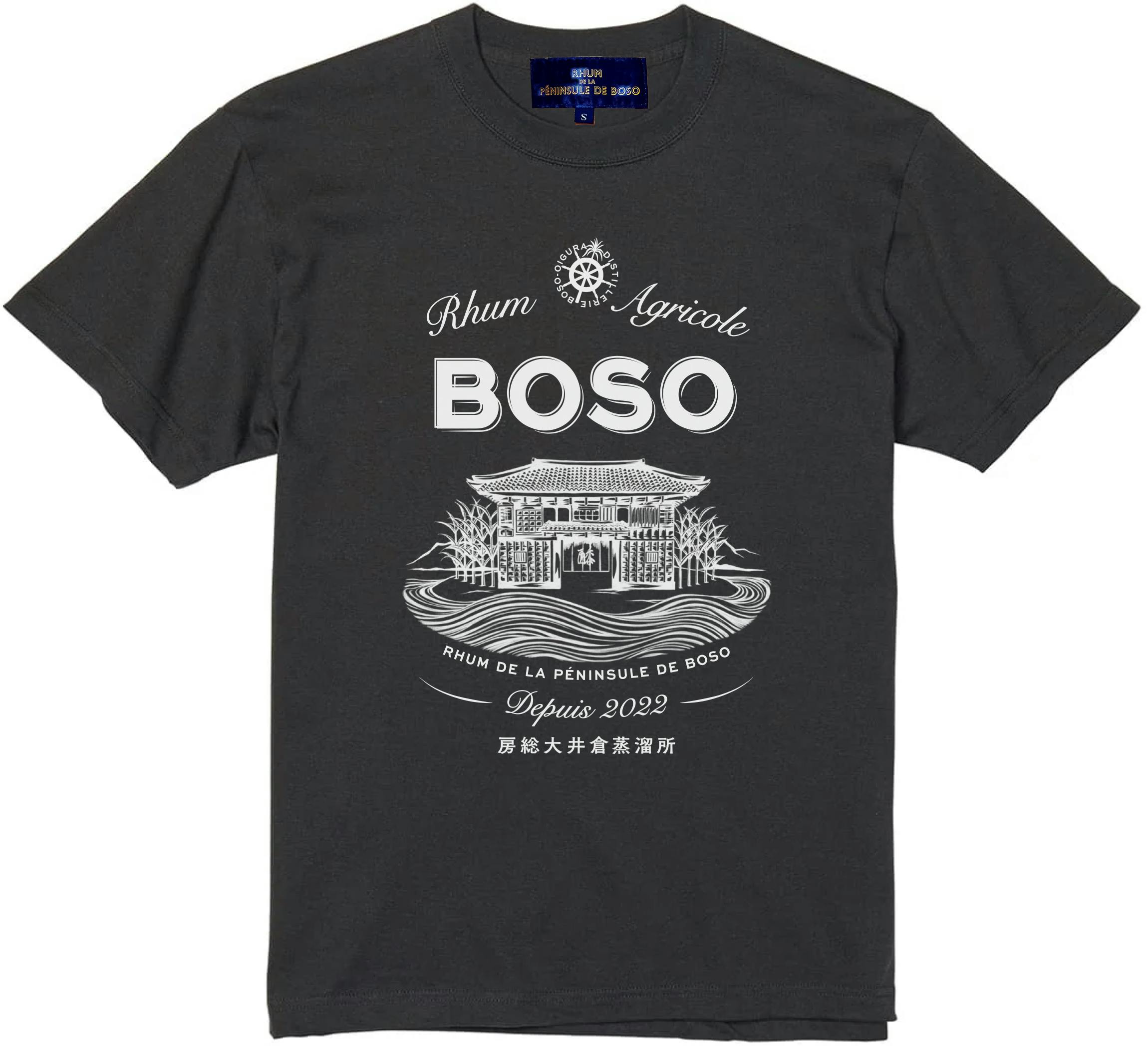Rhum de la Péninsule de BOSO のプロジェクトを象徴するラム「BOSO Rhum Agricole Soleil-太陽-」のラベルがデザインされたTシャツです。