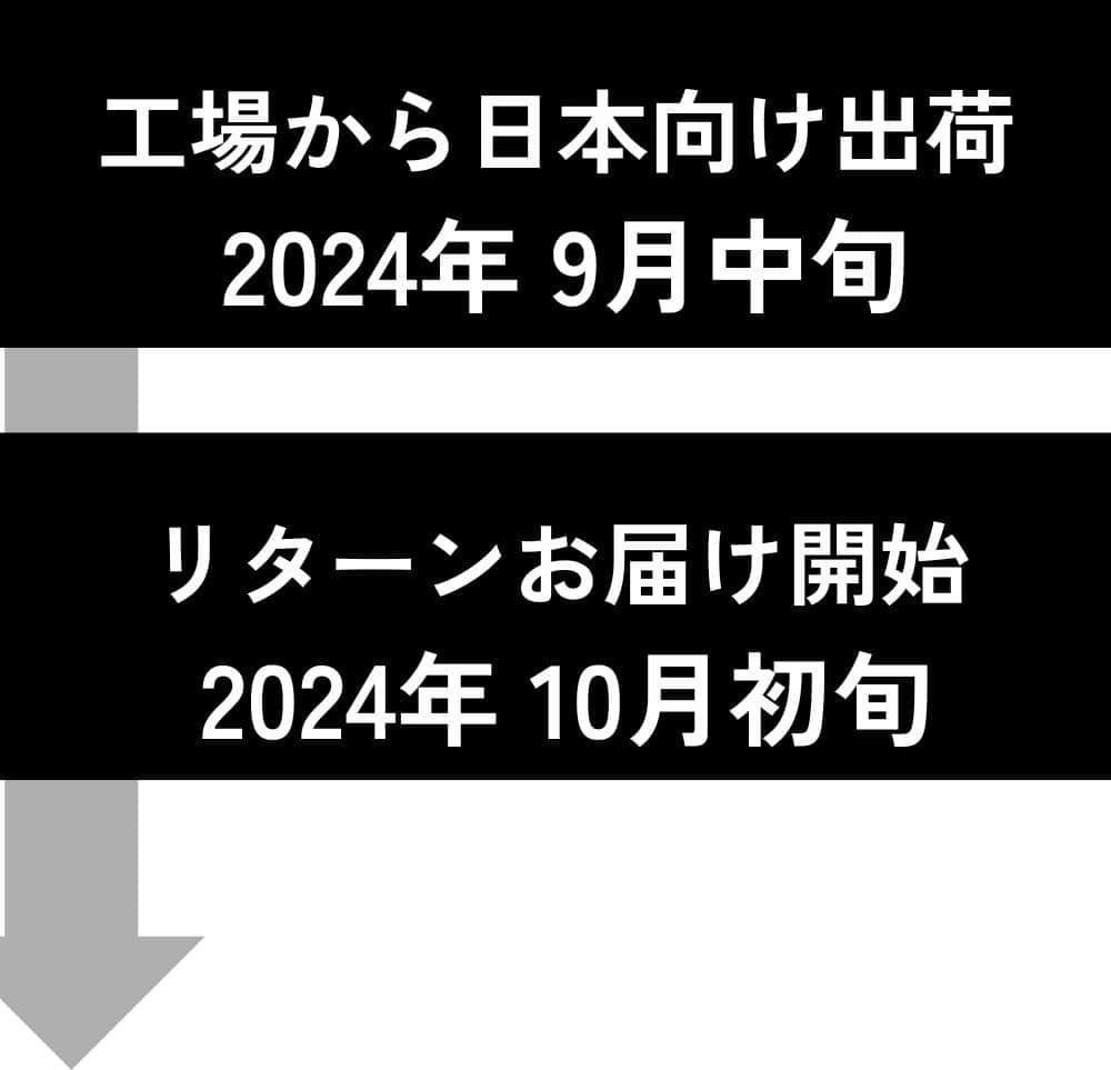 ご注文分を発注して生産・検品完了まで約40日、工場から国内倉庫までは国際輸送を利⽤します。 通常2週間程度で配送されますが、通関手続きで稀に3週間を超えることもあります。