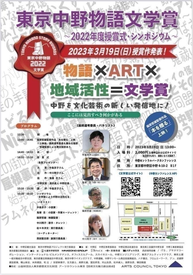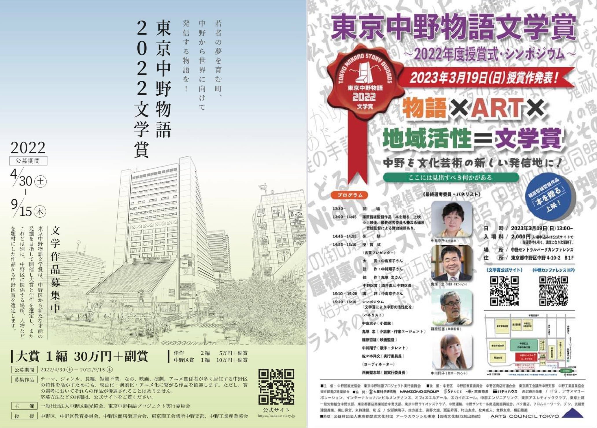 *第1回東京中野物語2022文学賞公式ホームページ・・・ https://1st.nakano-story.jp/