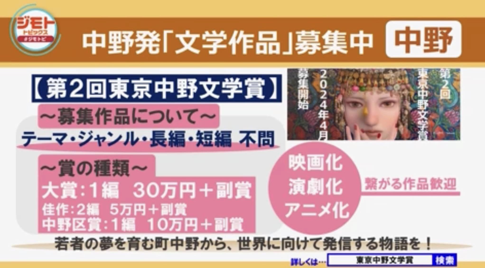 *文学賞で地域活性化を目指す「東京中野物語2022文学賞」第1回目の受賞者が発表! | NEWSCAST・・・https://newscast.jp/news/3372506/amp